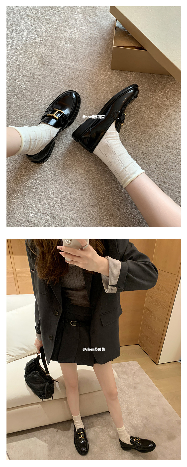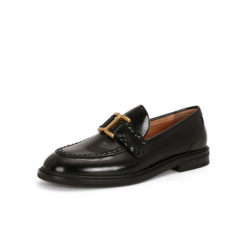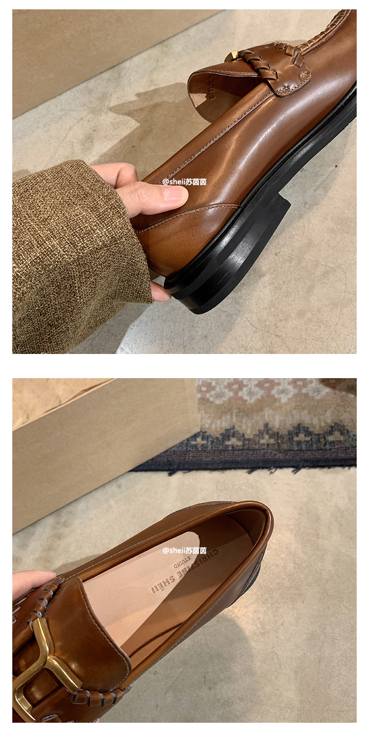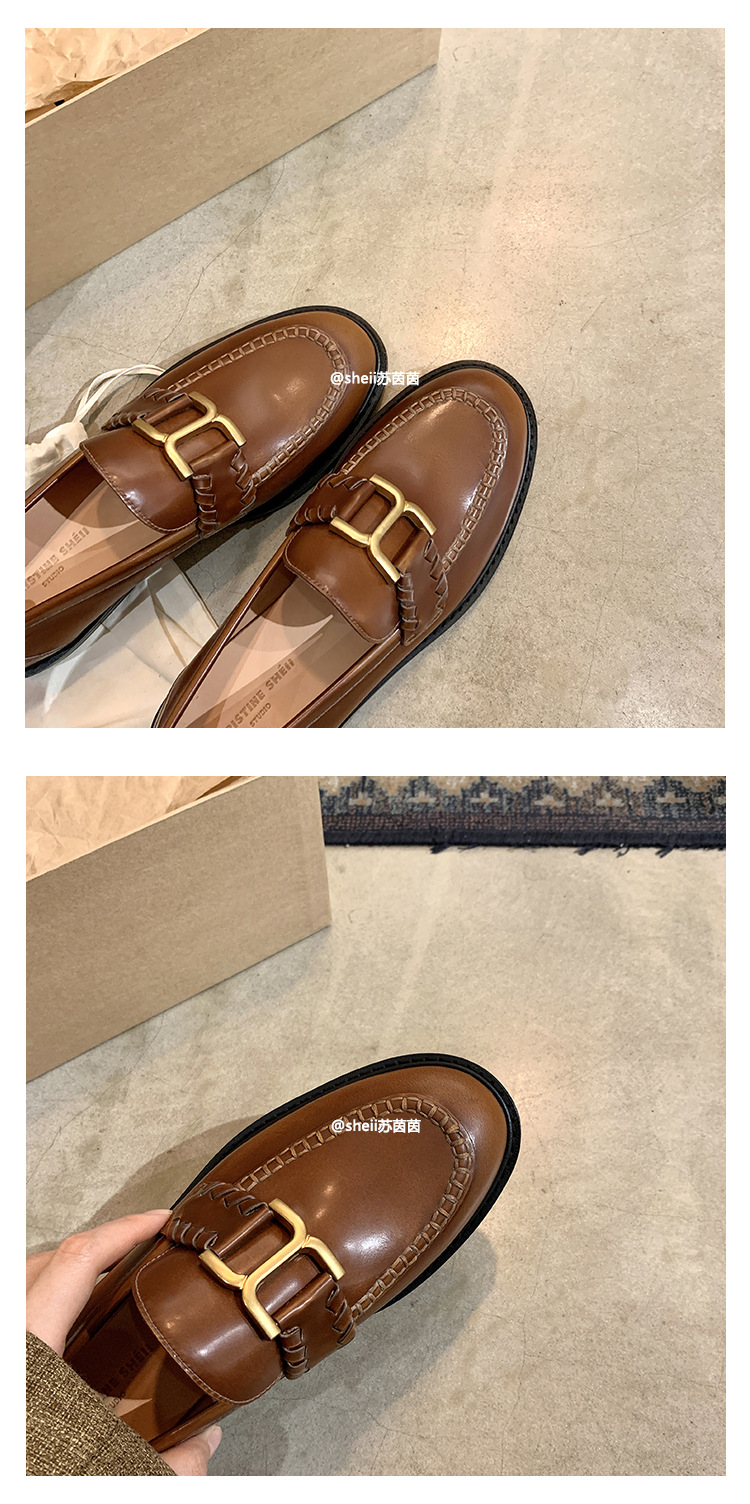 [셰이이 수 이닌] 호튼 매너 ~ 영국 레트로 골드 버클 카우히데 게으른 레푸 싱글 신발 여성용 작은 가죽 신발