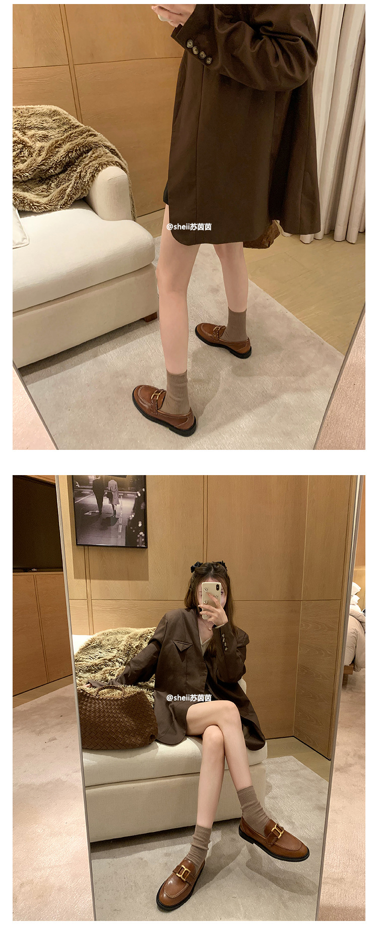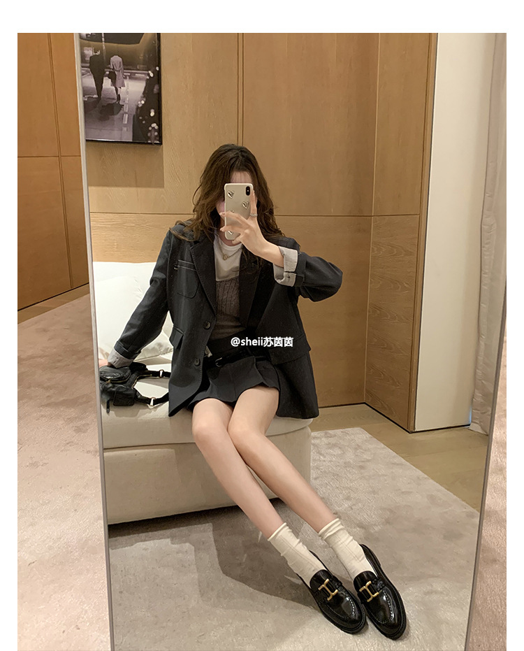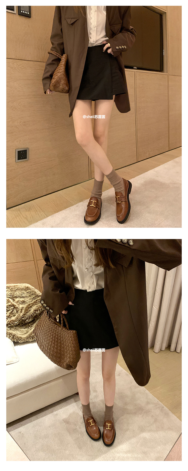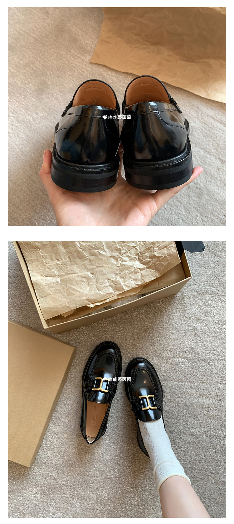 [셰이이 수 이닌] 호튼 매너 ~ 영국 레트로 골드 버클 카우히데 게으른 레푸 싱글 신발 여성용 작은 가죽 신발