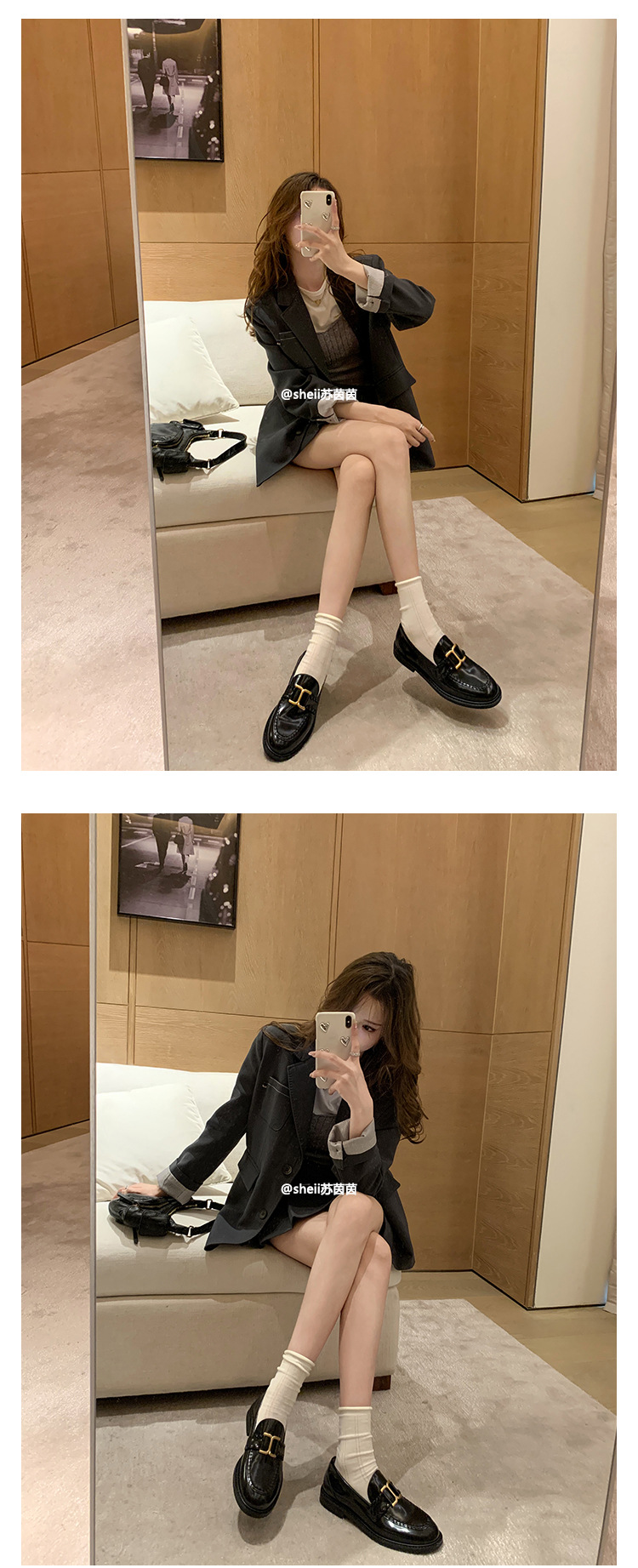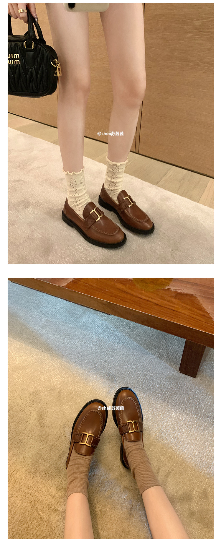 [셰이이 수 이닌] 호튼 매너 ~ 영국 레트로 골드 버클 카우히데 게으른 레푸 싱글 신발 여성용 작은 가죽 신발스토어 가기