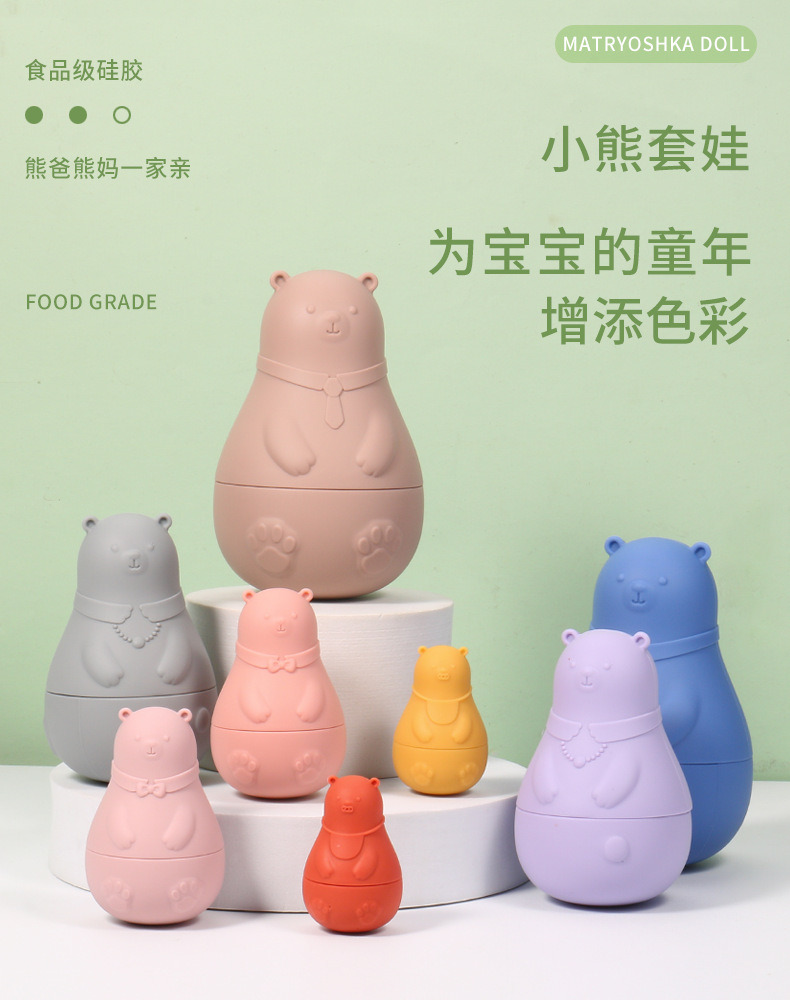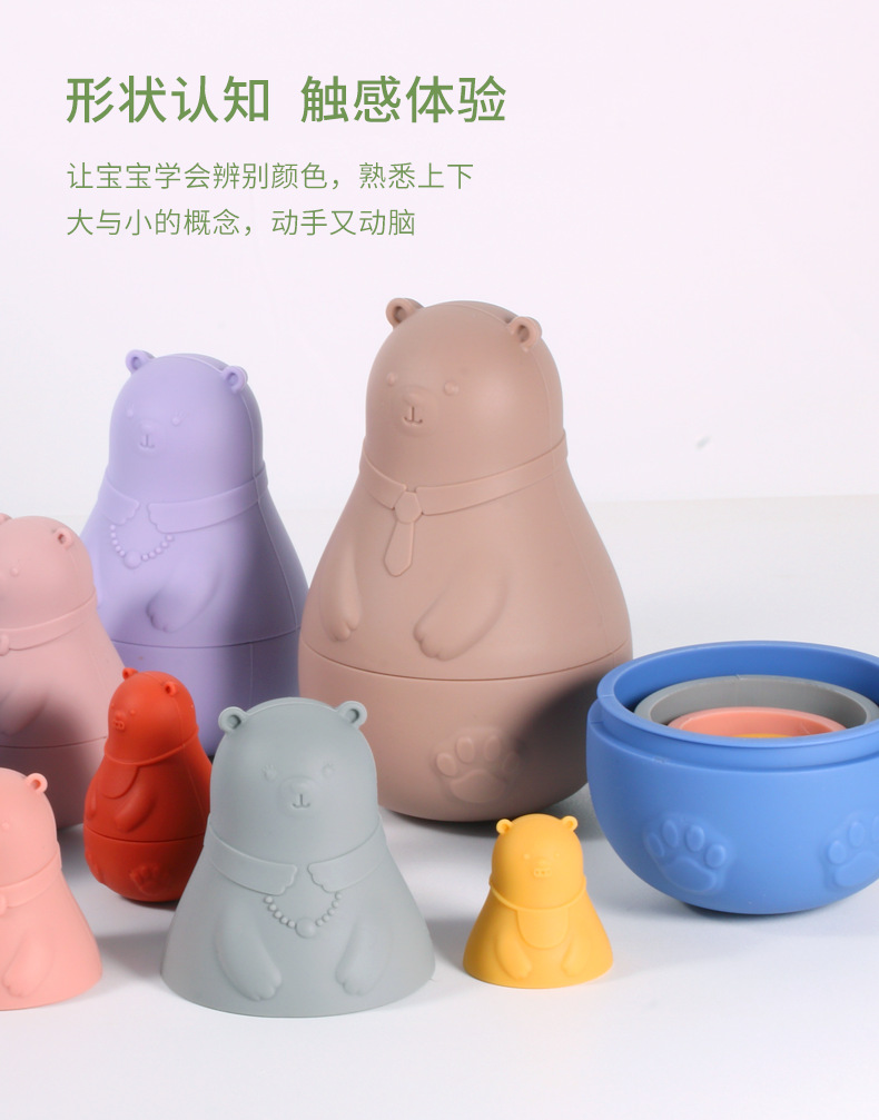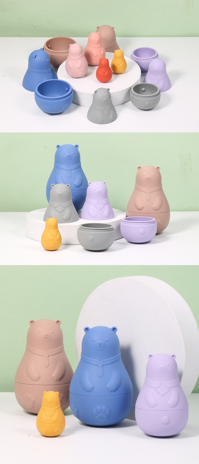 공장 새로운 실리콘 러시아 중첩 인형 조기 교육 교육 빌딩 블록 장난감 아기 조립 곰 귀여운