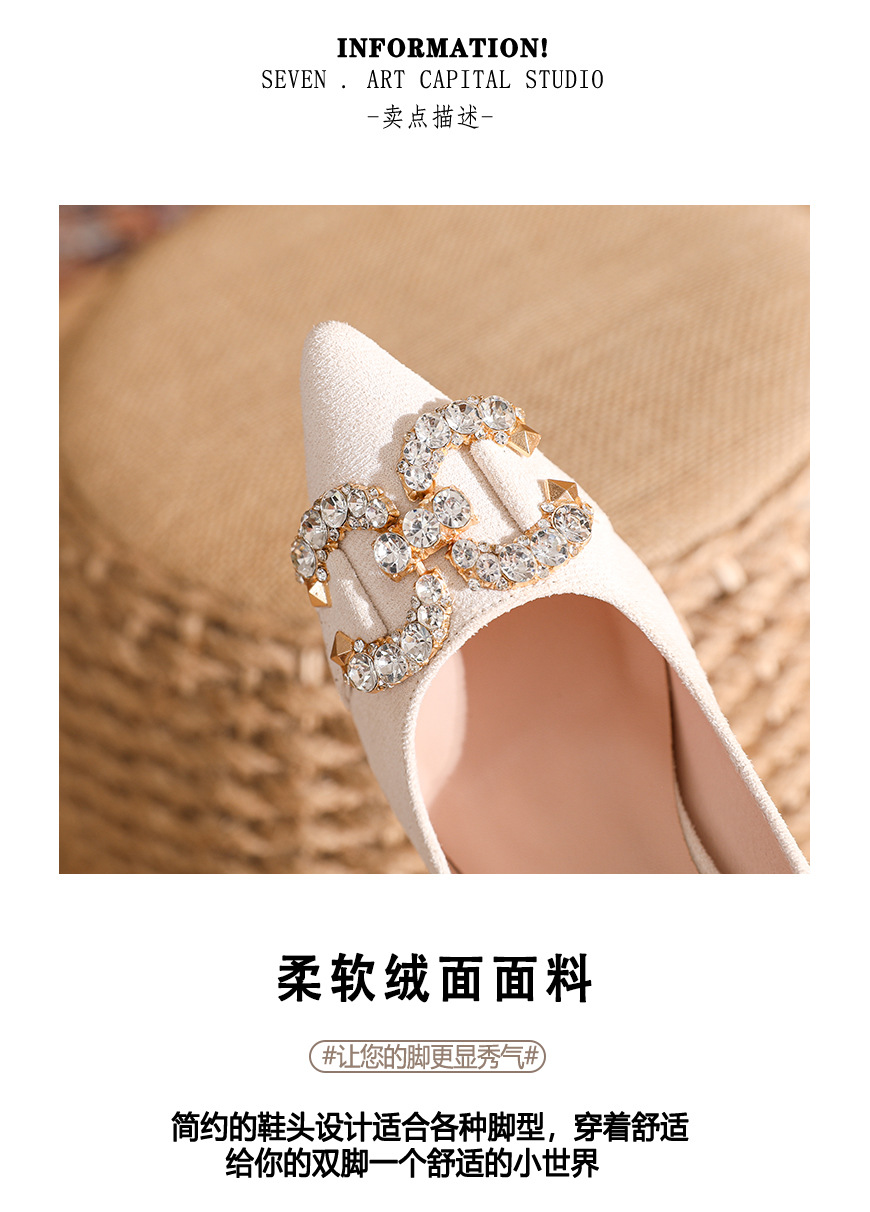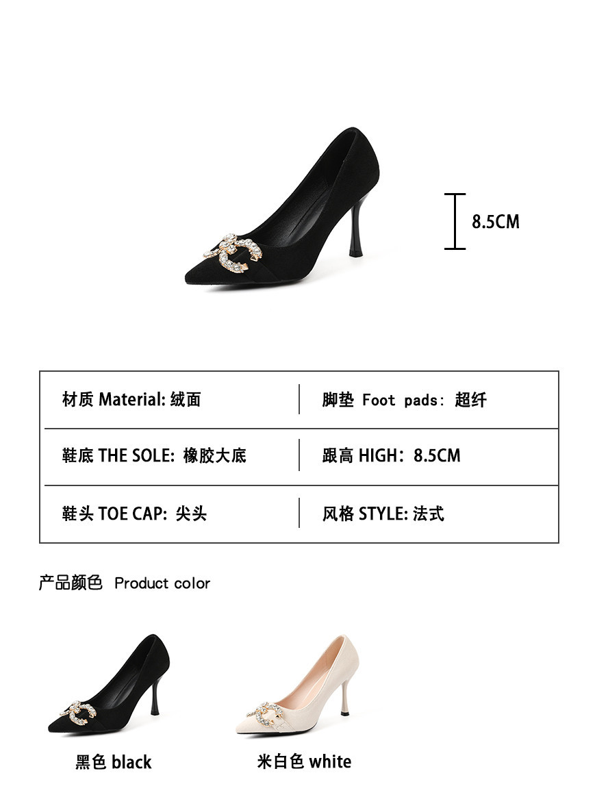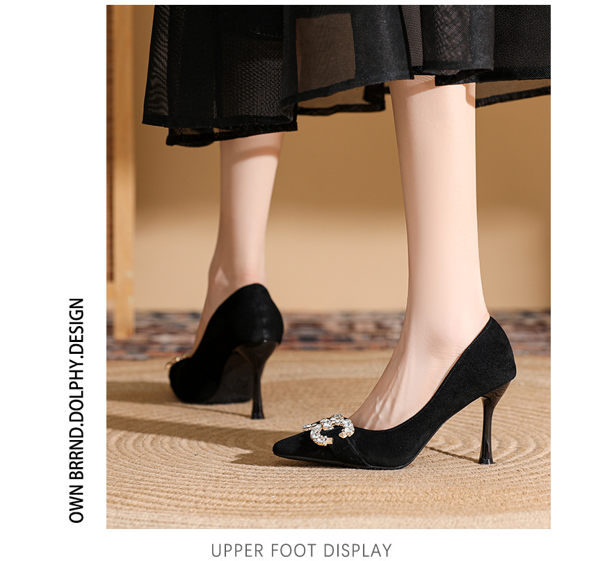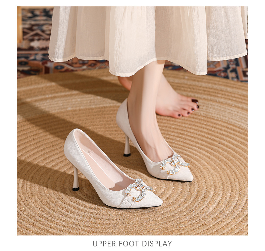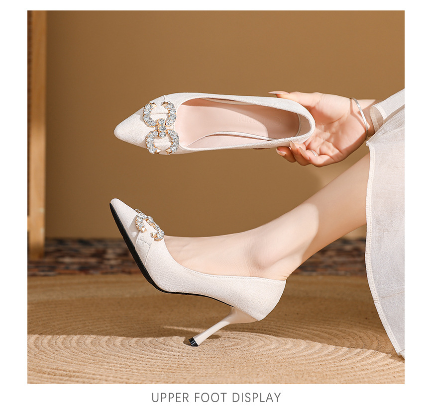 2024 새로운 뾰족한 스틸레토 힐 플러스 사이즈 플러스 뚱뚱한 길쭉한 라인스톤 스퀘어 버클 여성 싱글 슈즈 스몰 사이즈 얕은 입 올매치스토어 가기