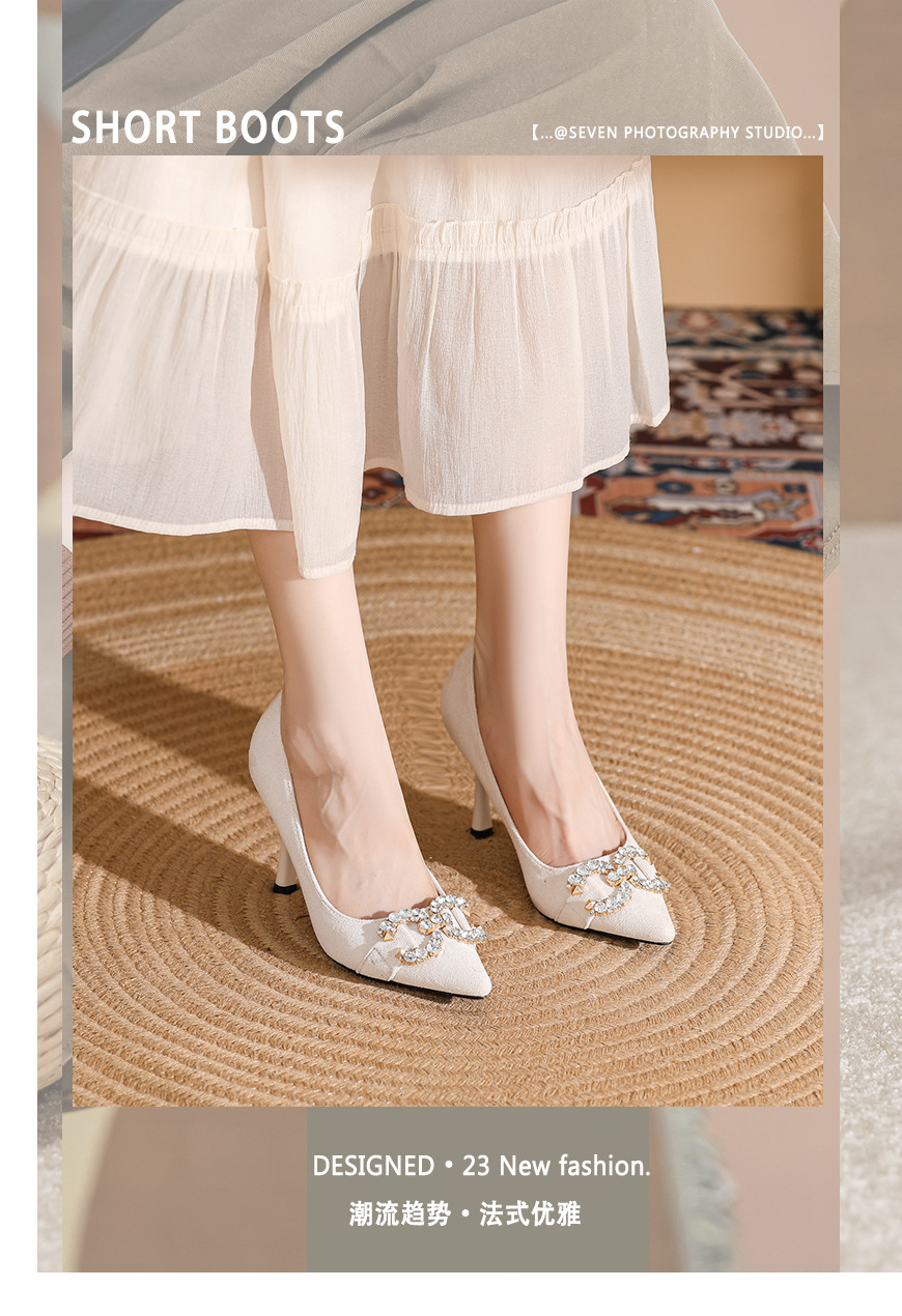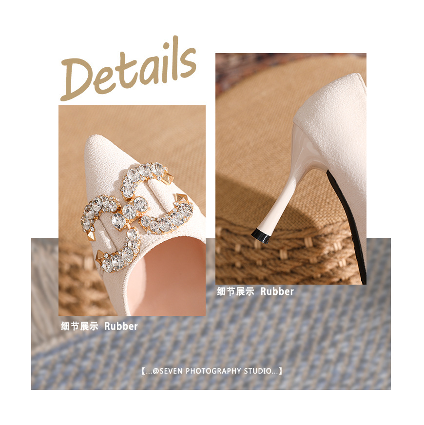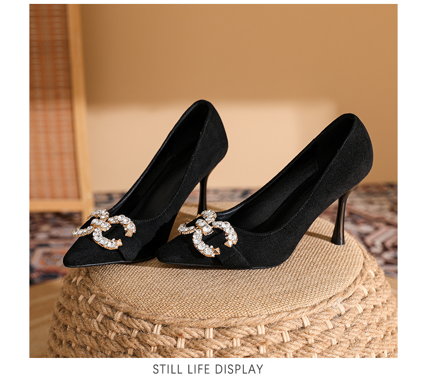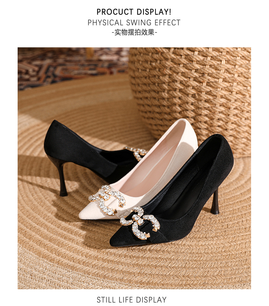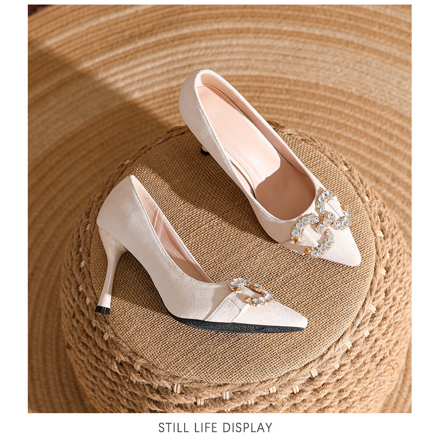 2024 새로운 뾰족한 스틸레토 힐 플러스 사이즈 플러스 뚱뚱한 길쭉한 라인스톤 스퀘어 버클 여성 싱글 슈즈 스몰 사이즈 얕은 입 올매치스토어 가기