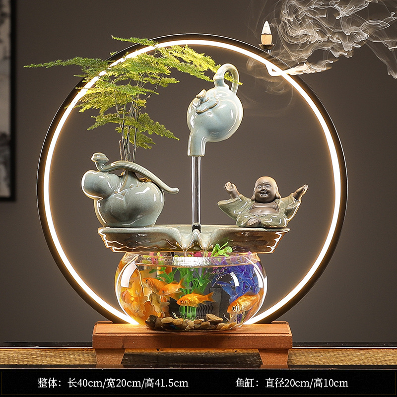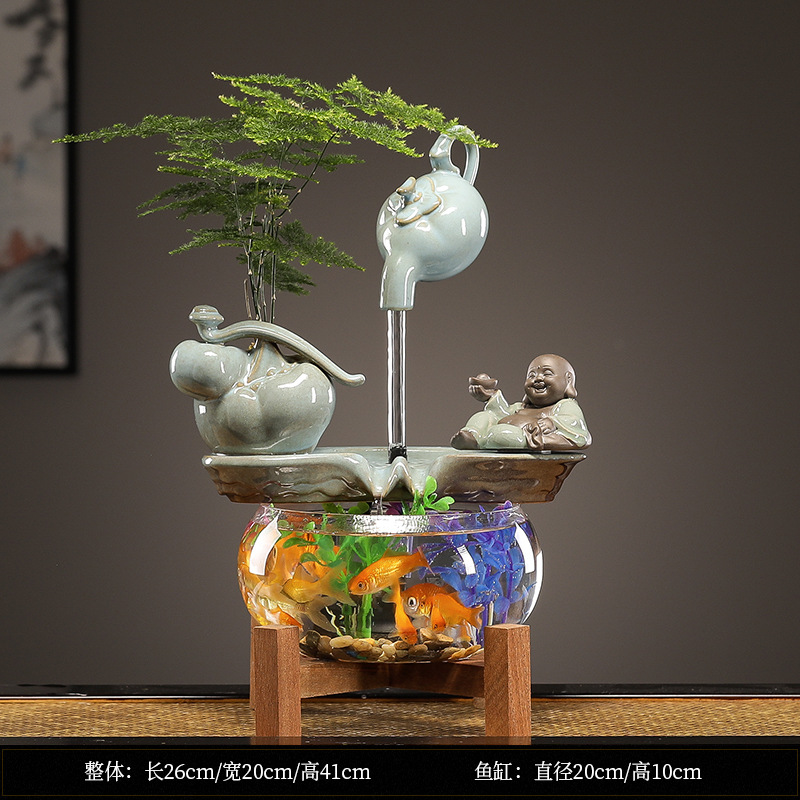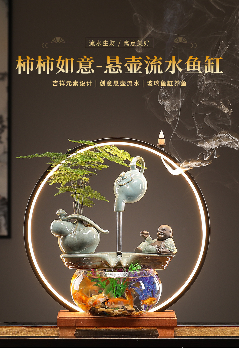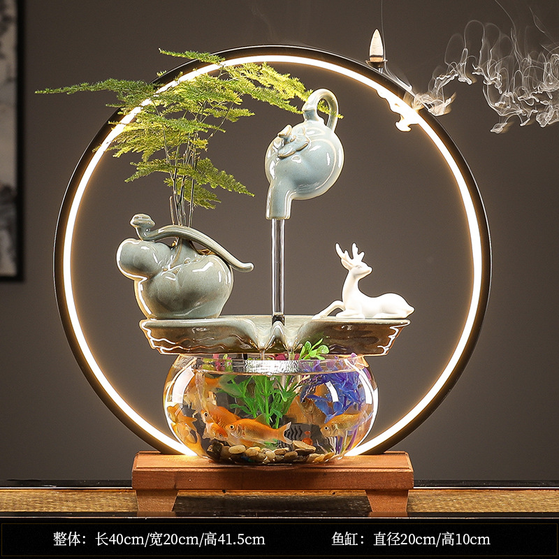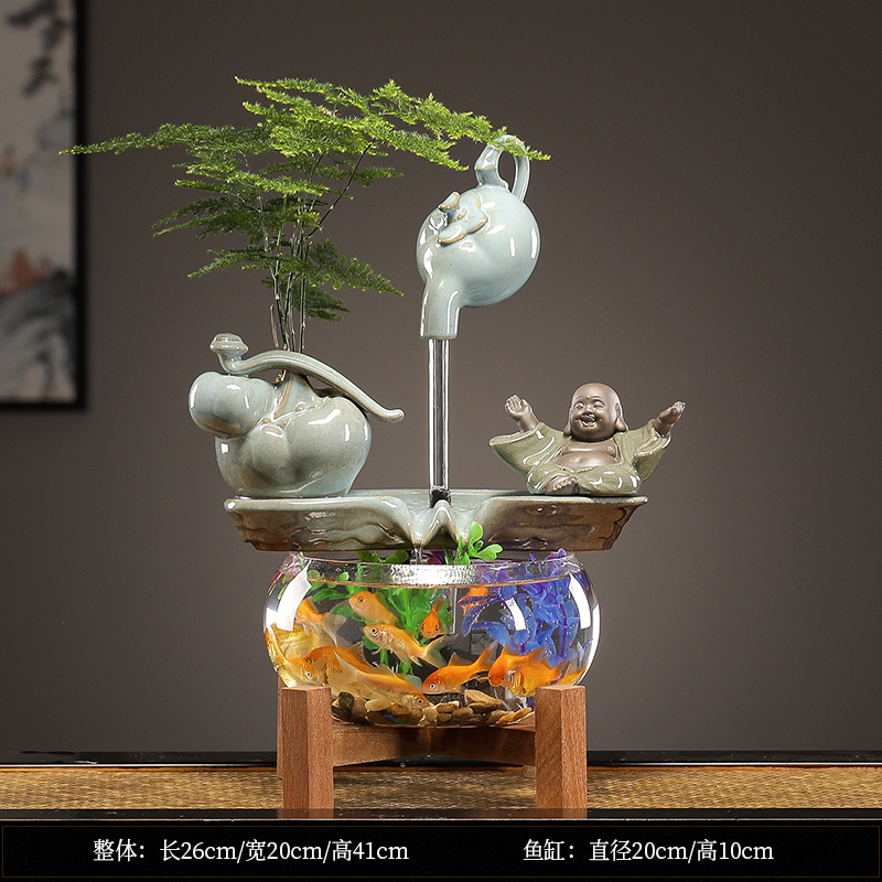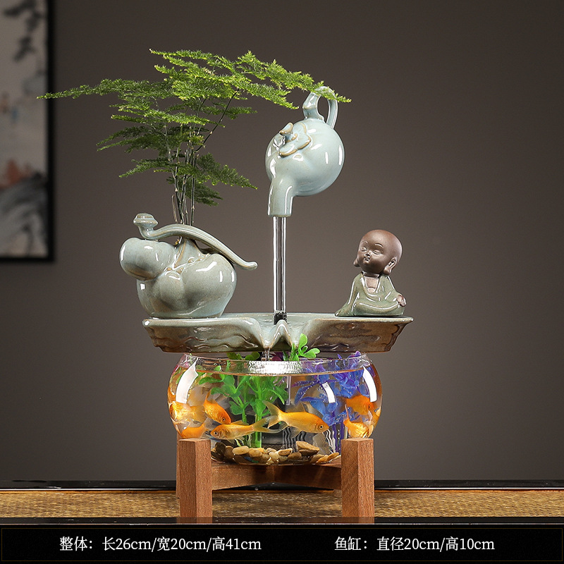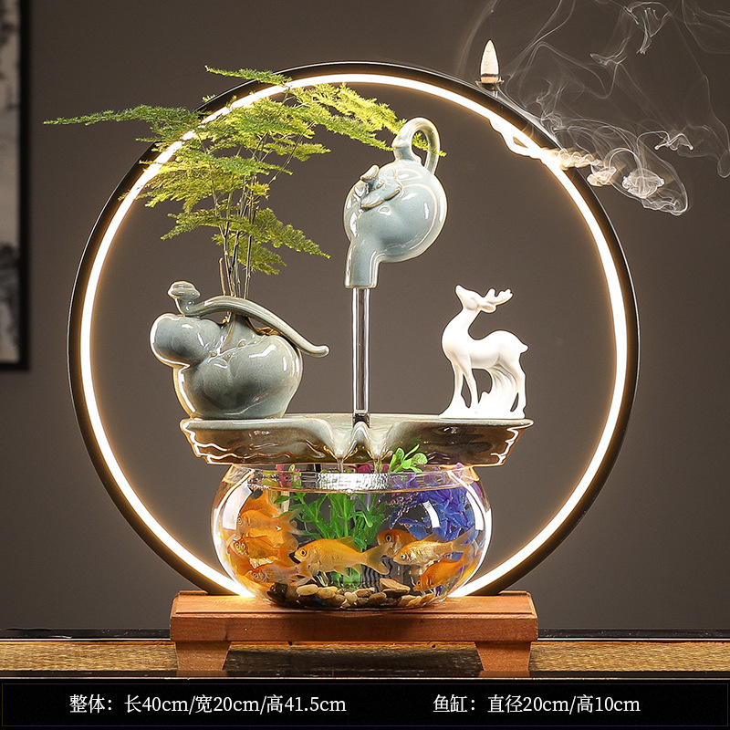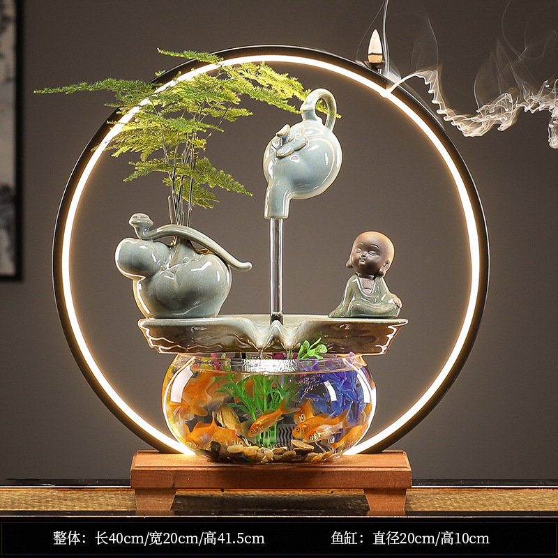 수세미처럼 행운이 가득한 물고기 어항 장식품, 순환수 장식품, 거실 사무실 개업 선물