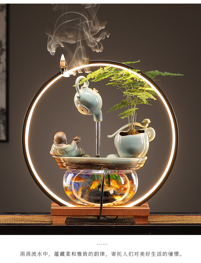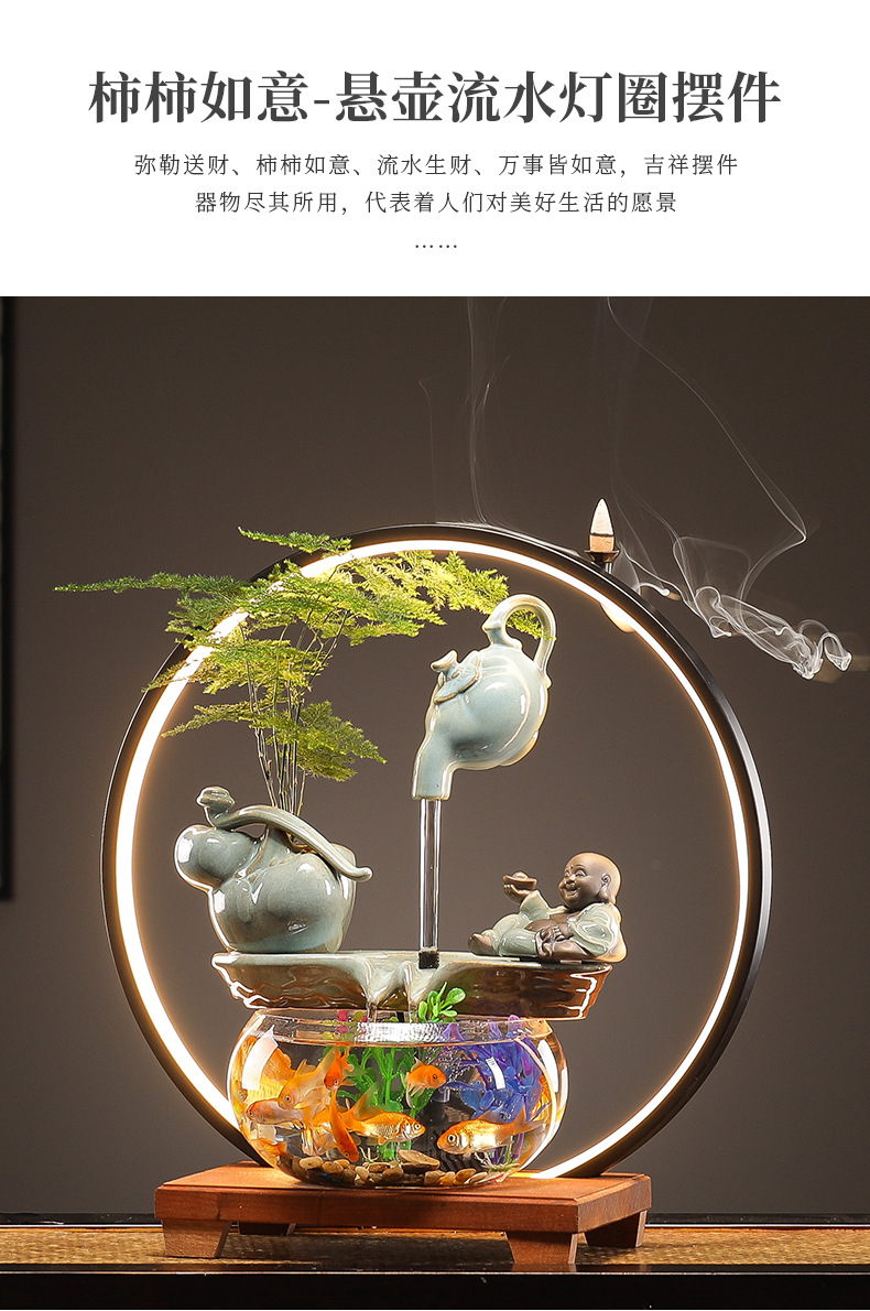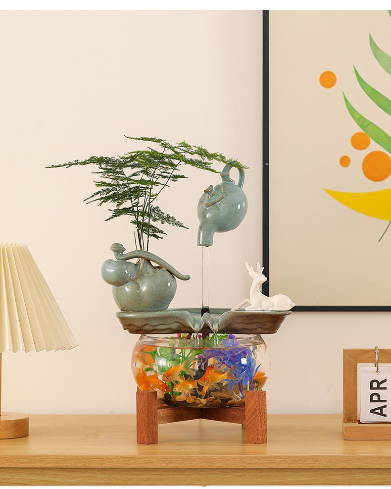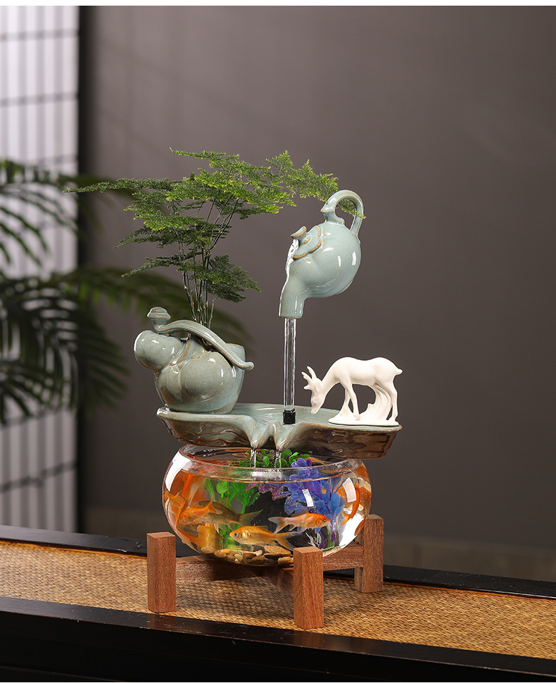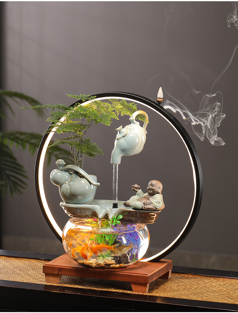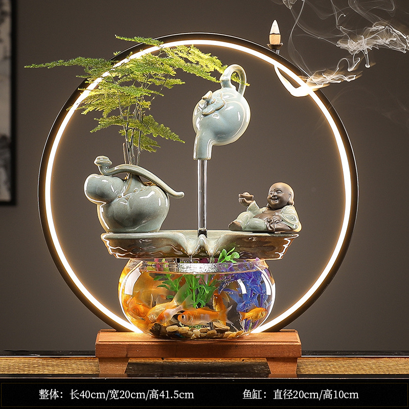 수세미처럼 행운이 가득한 물고기 어항 장식품, 순환수 장식품, 거실 사무실 개업 선물
