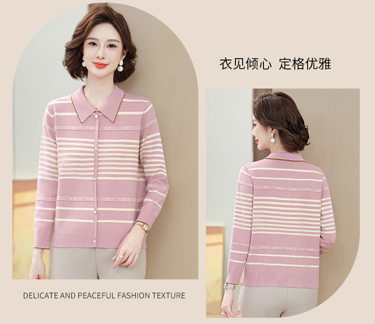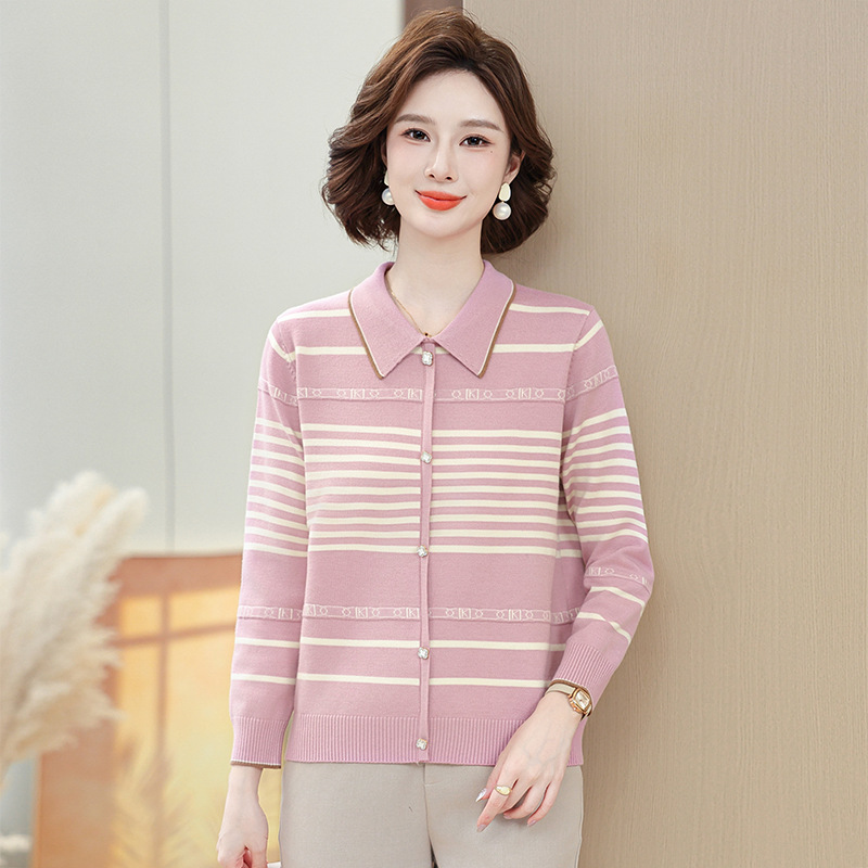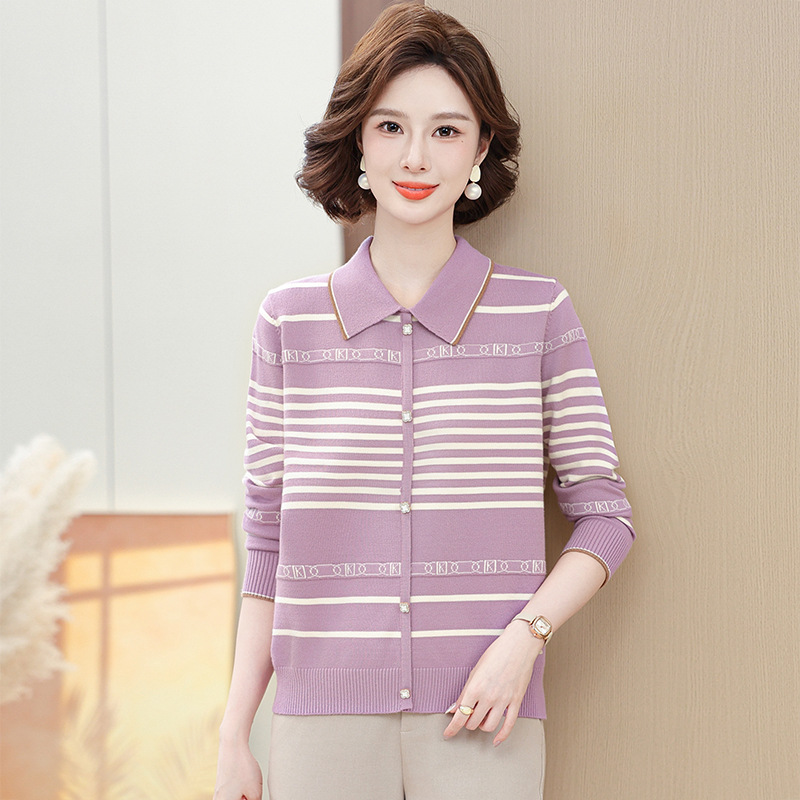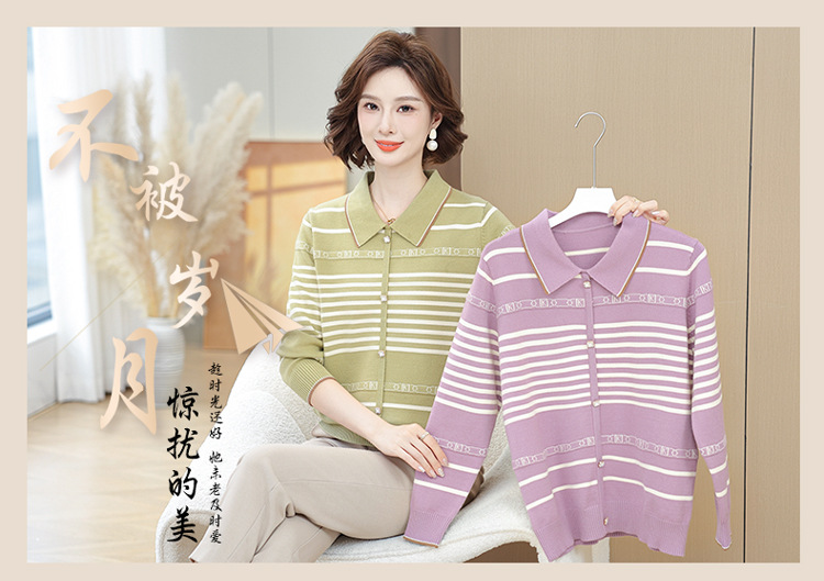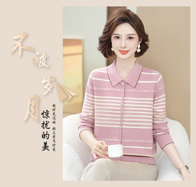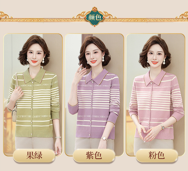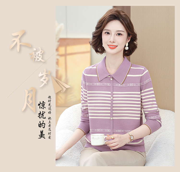 가을 새로운 래스 젊은 세련된 어머니 원피스 패션 연령 감소 줄무늬 품질 중년 및 노인 니트 셔츠 탑