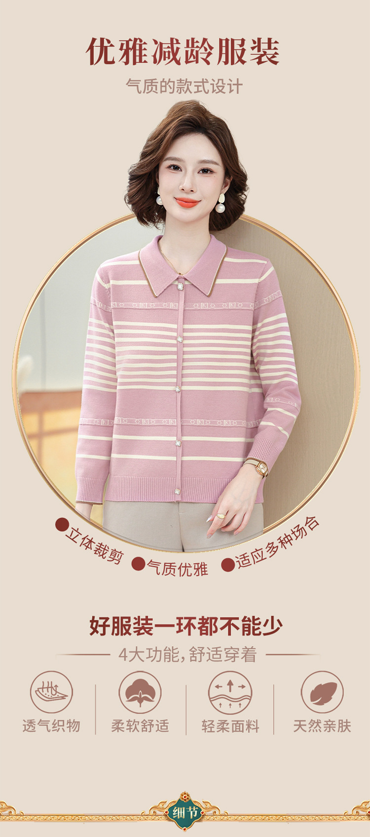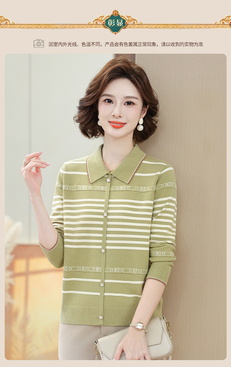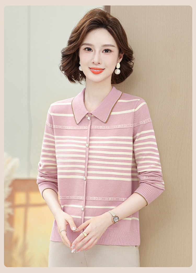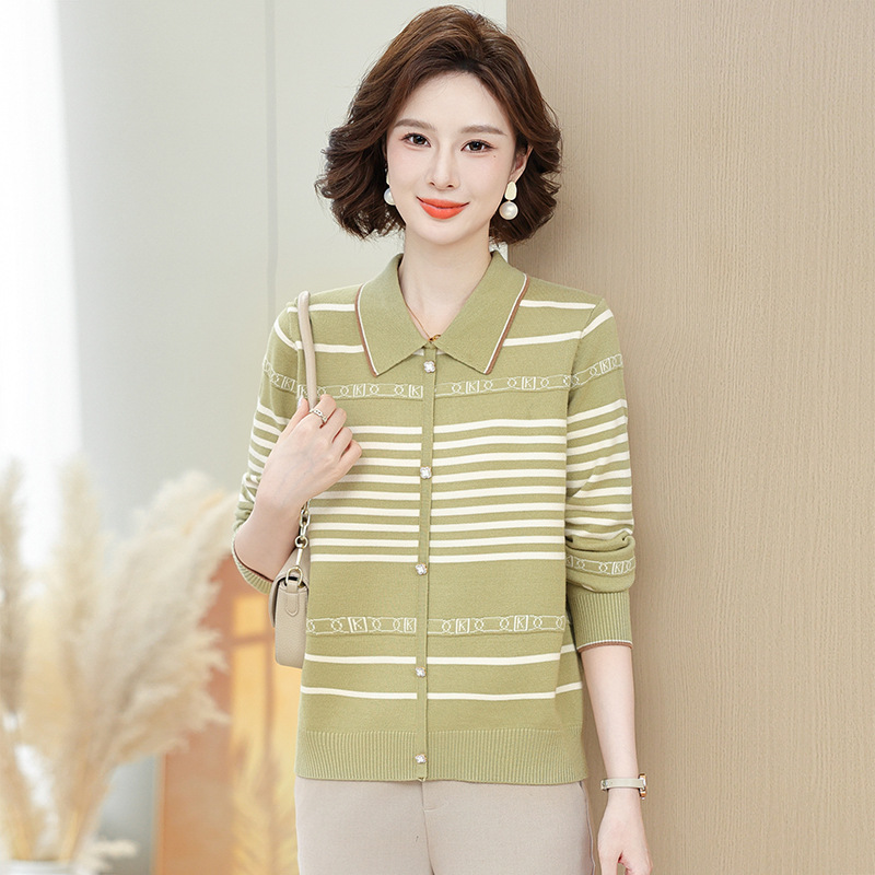 가을 새로운 래스 젊은 세련된 어머니 원피스 패션 연령 감소 줄무늬 품질 중년 및 노인 니트 셔츠 탑