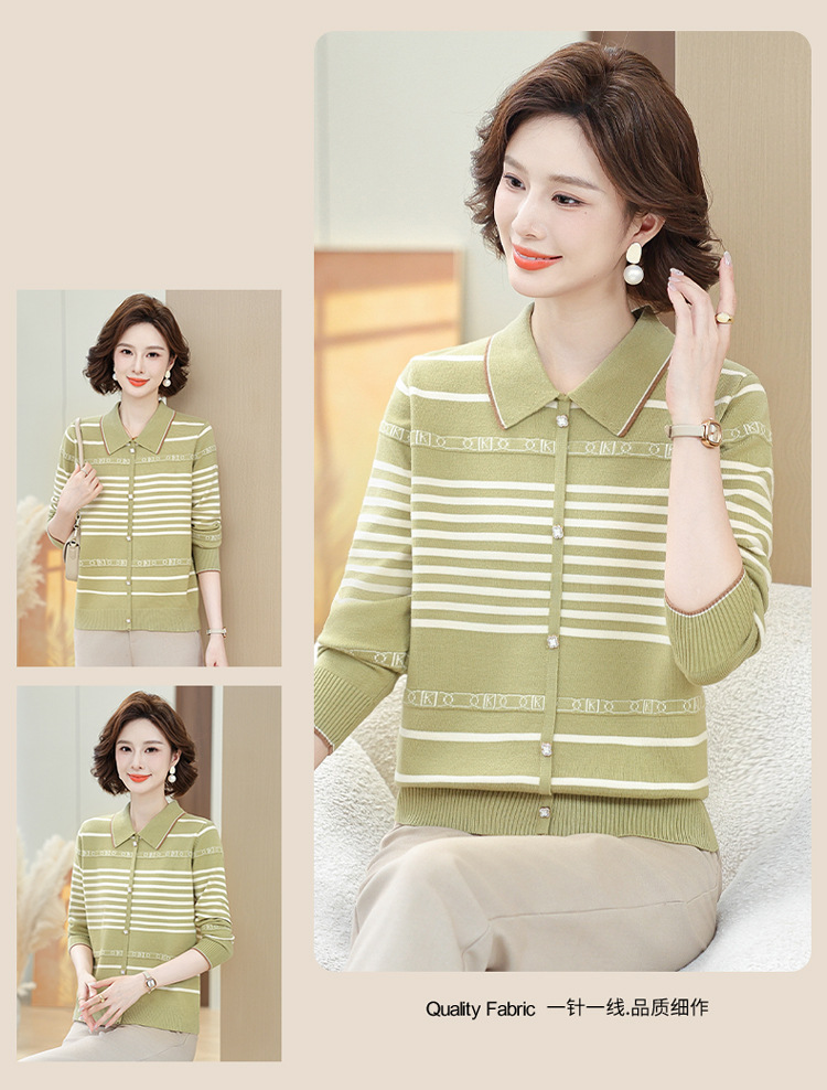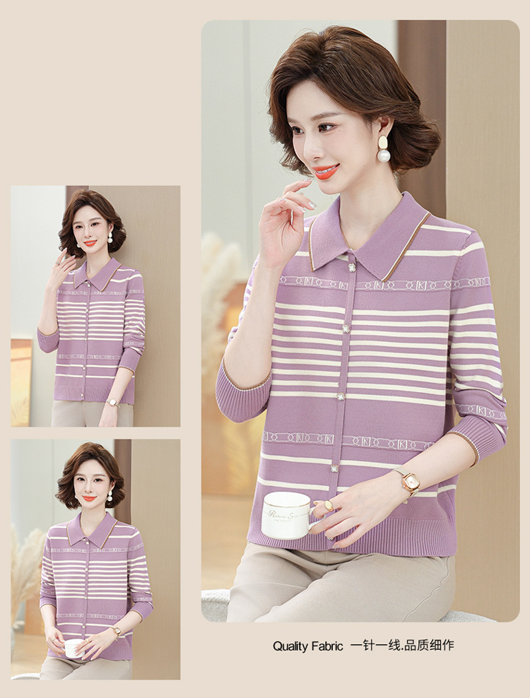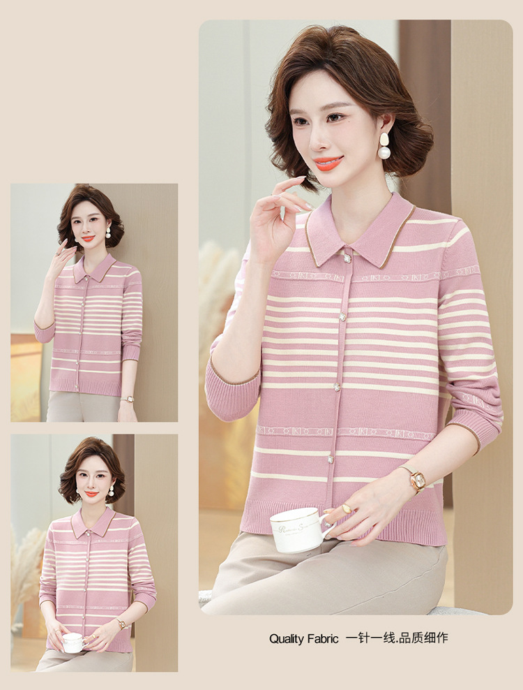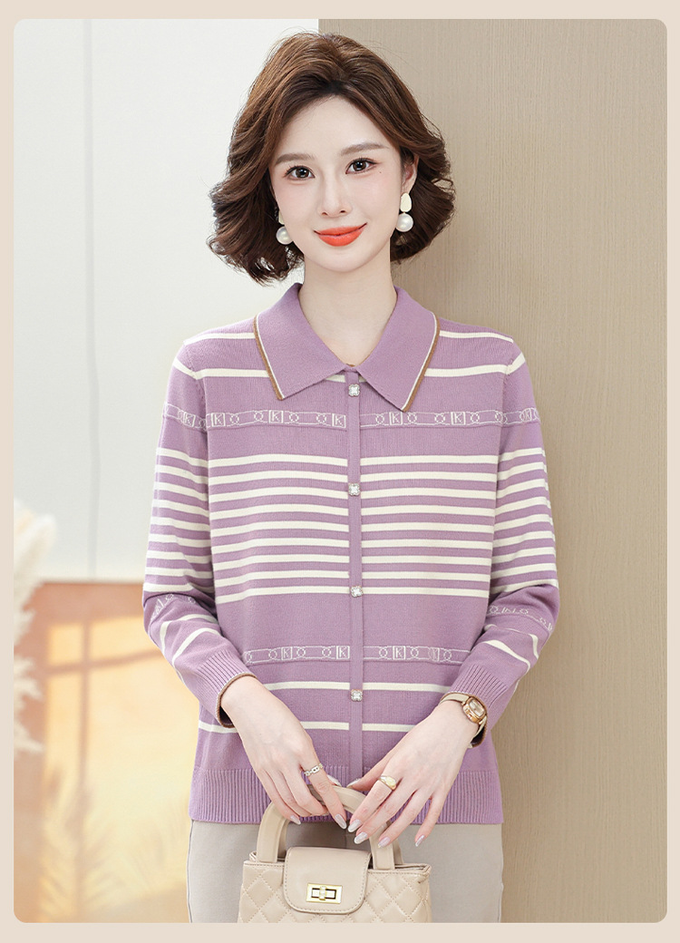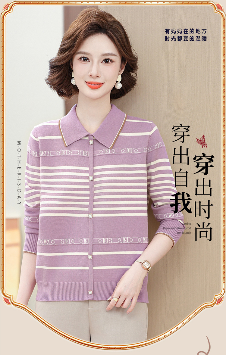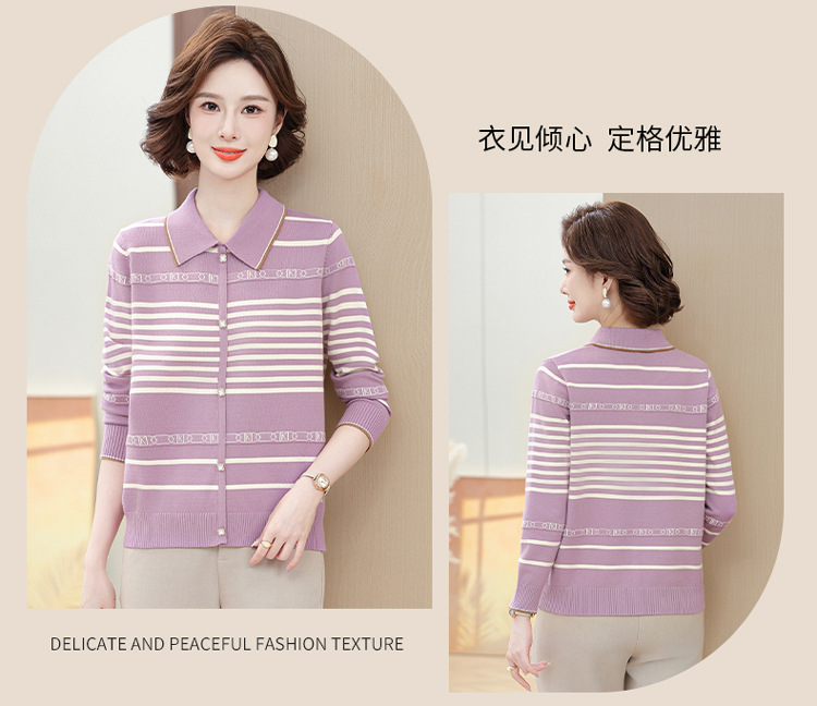 가을 새로운 래스 젊은 세련된 어머니 원피스 패션 연령 감소 줄무늬 품질 중년 및 노인 니트 셔츠 탑스토어 가기