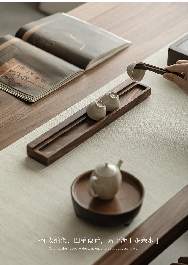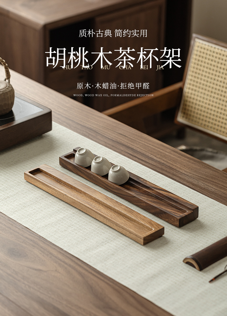 Haolan 호두 티 컵 저장 랙 솔리드 우드 배수 랙 가정용 빈티지 컵 보관 랙 다도 액세서리스토어 가기