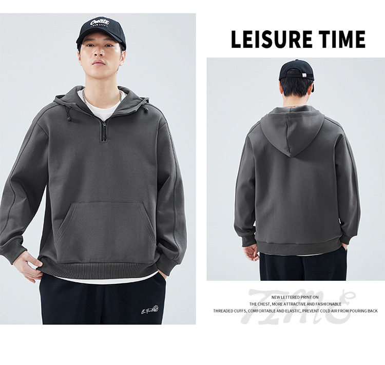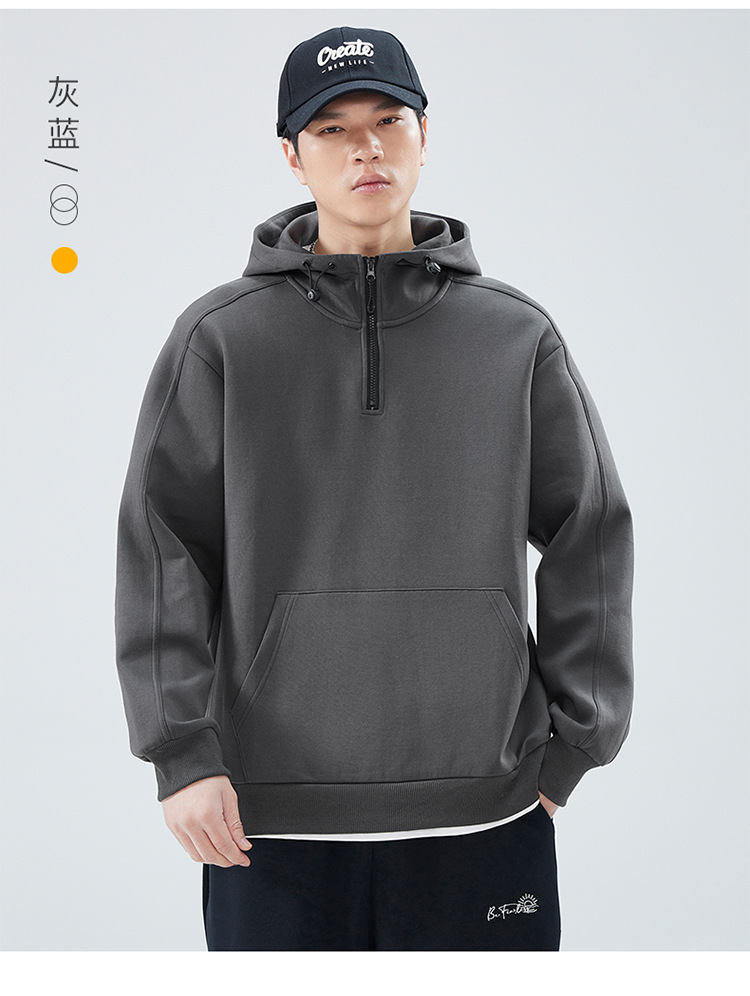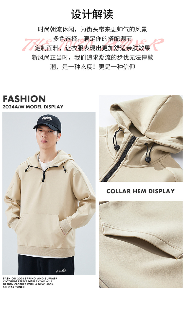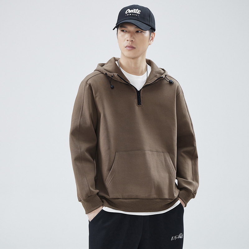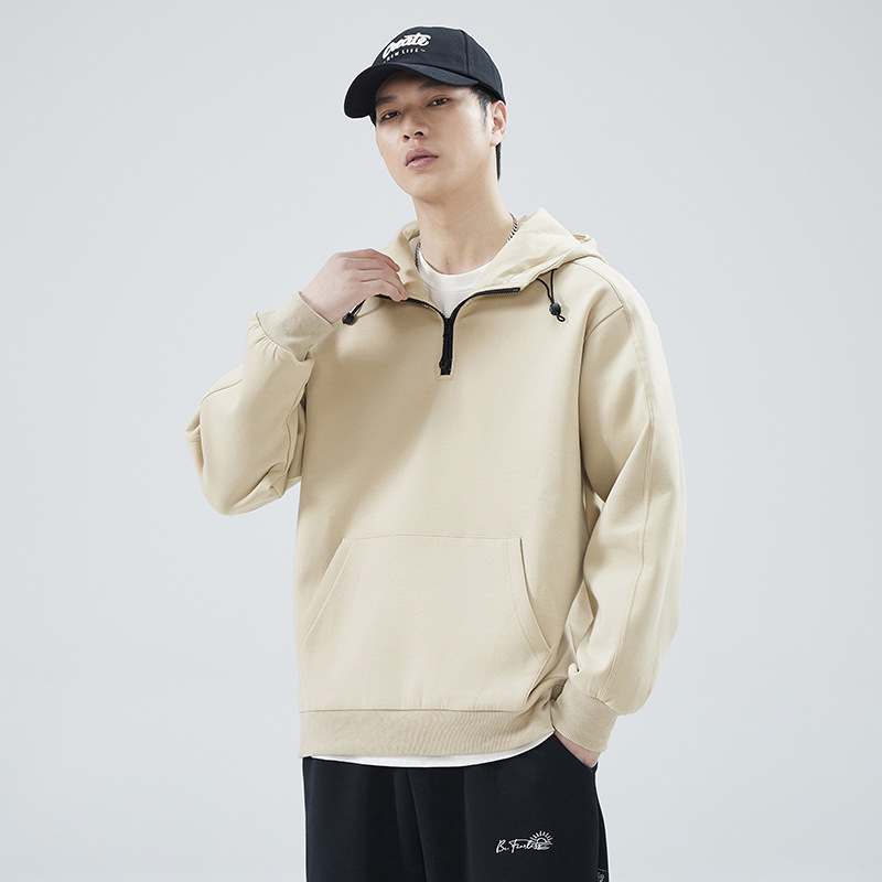 봄 가을 반지퍼 후드 스탠드 칼라 스웨트셔츠 남성용 미국 스타일 트렌디 브랜드 반팔 루즈핏 캐주얼 풀오버 탑스토어 가기