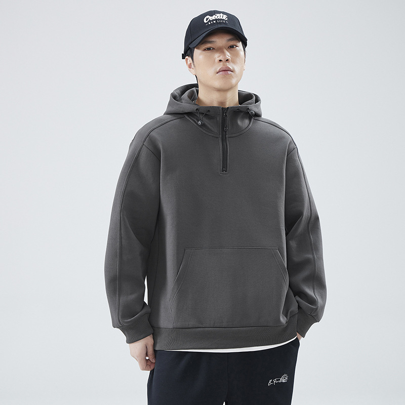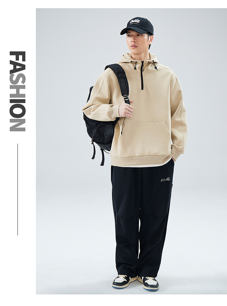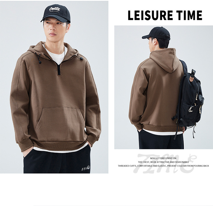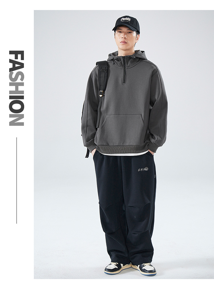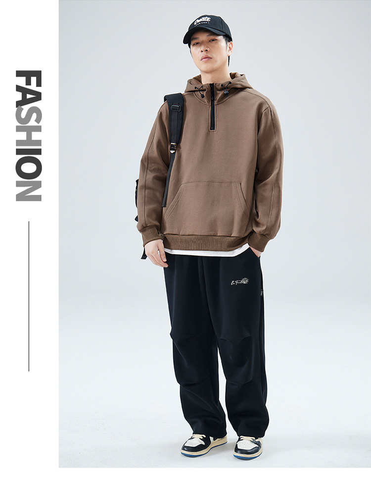 봄 가을 반지퍼 후드 스탠드 칼라 스웨트셔츠 남성용 미국 스타일 트렌디 브랜드 반팔 루즈핏 캐주얼 풀오버 탑스토어 가기