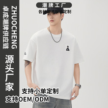 봄 가을 반지퍼 후드 스탠드 칼라 스웨트셔츠 남성용 미국 스타일 트렌디 브랜드 반팔 루즈핏 캐주얼 풀오버 탑