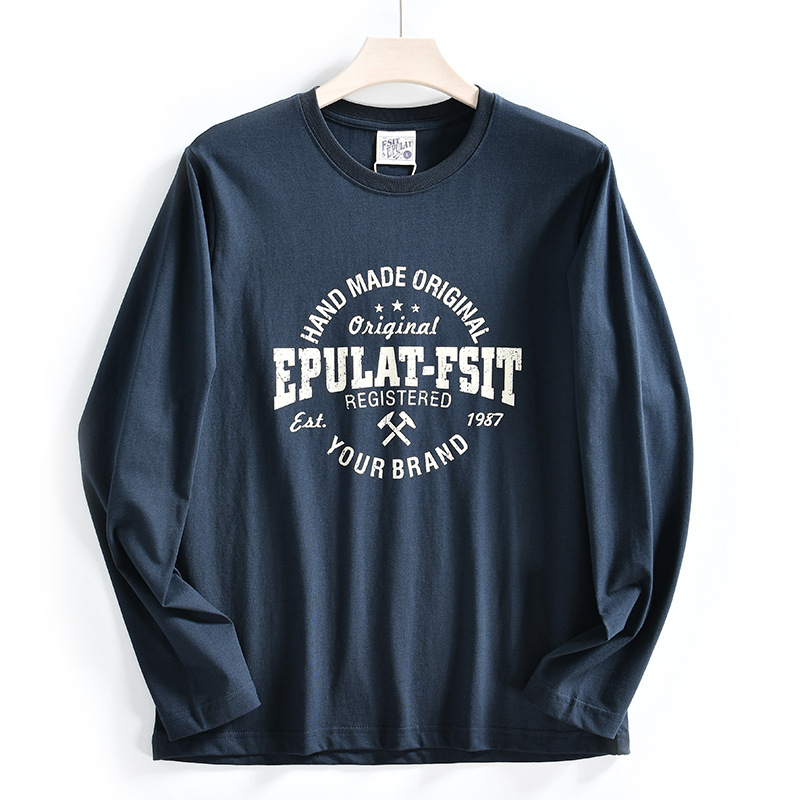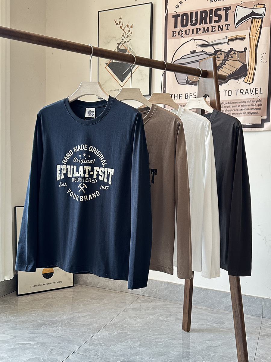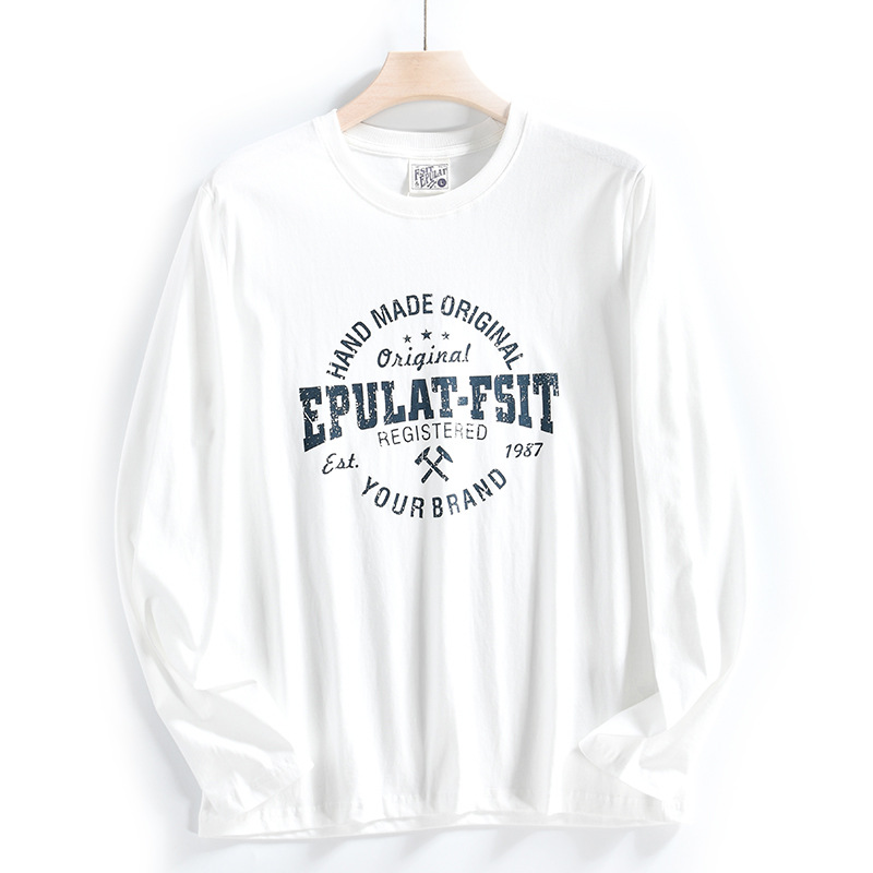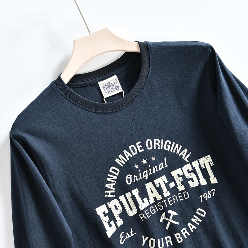 2024 새로운면 수분 흡수 통기성 편지 인쇄! 가을과 겨울 남자의 긴 소매 미국 캐주얼 라운드 넥 티셔츠