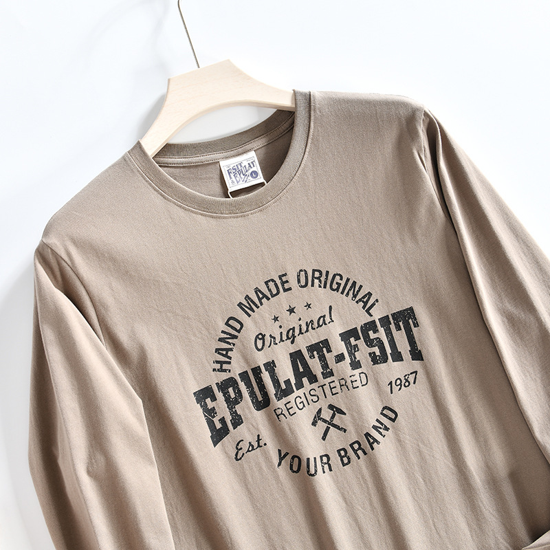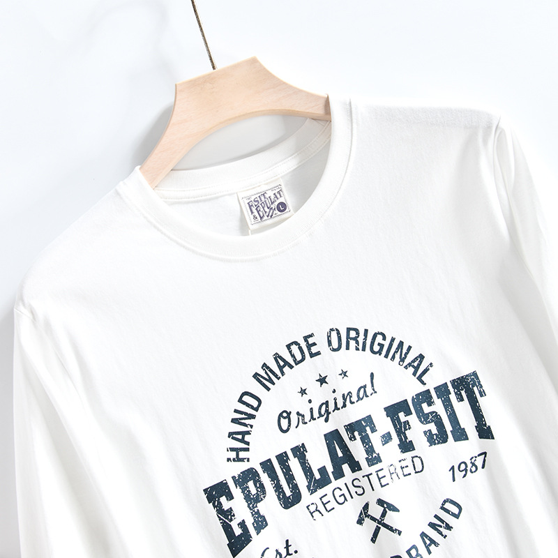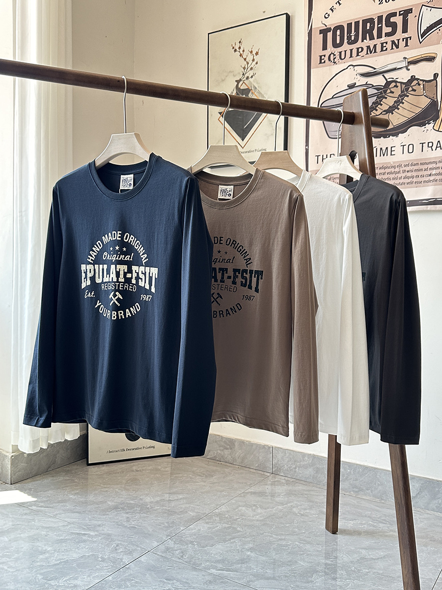 2024 새로운면 수분 흡수 통기성 편지 인쇄! 가을과 겨울 남자의 긴 소매 미국 캐주얼 라운드 넥 티셔츠스토어 가기
