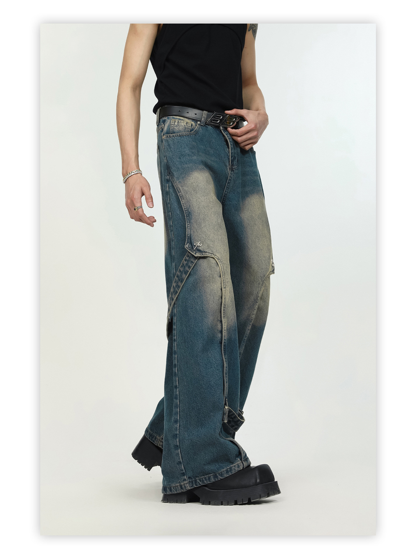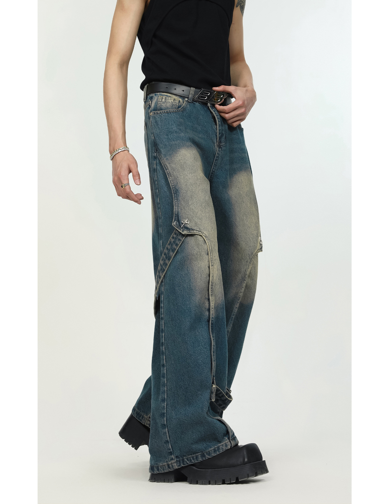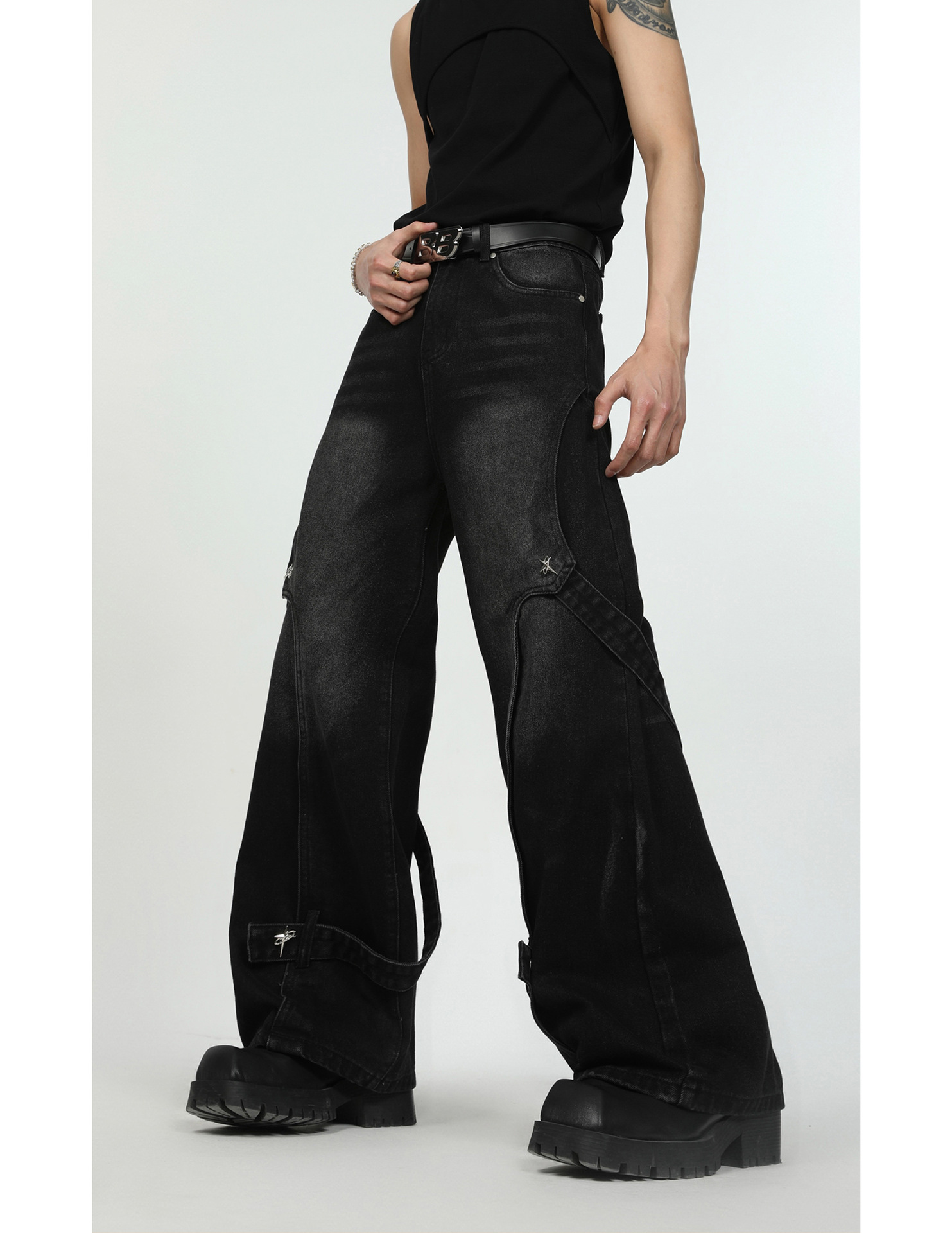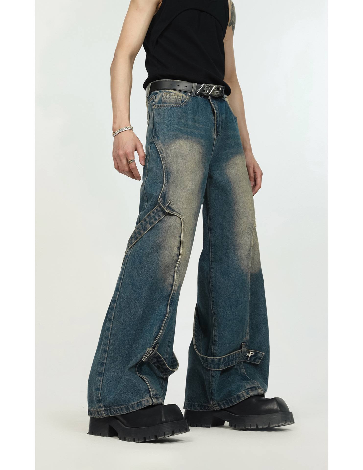 미국식 바이브 마이크로 스트랩 앤티크 청바지 남성과 여성의 느슨한 스트레이트 레트로 틈새 할란 바지