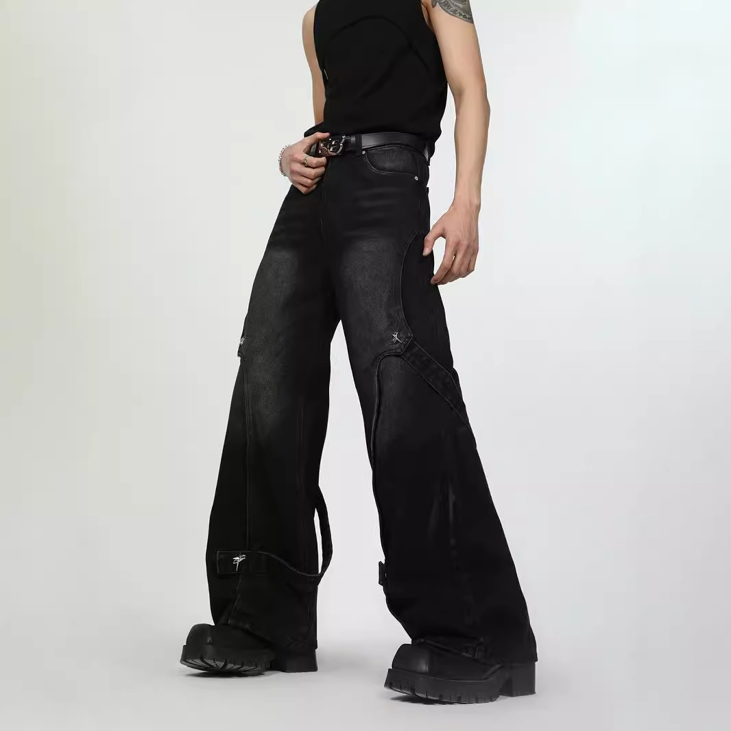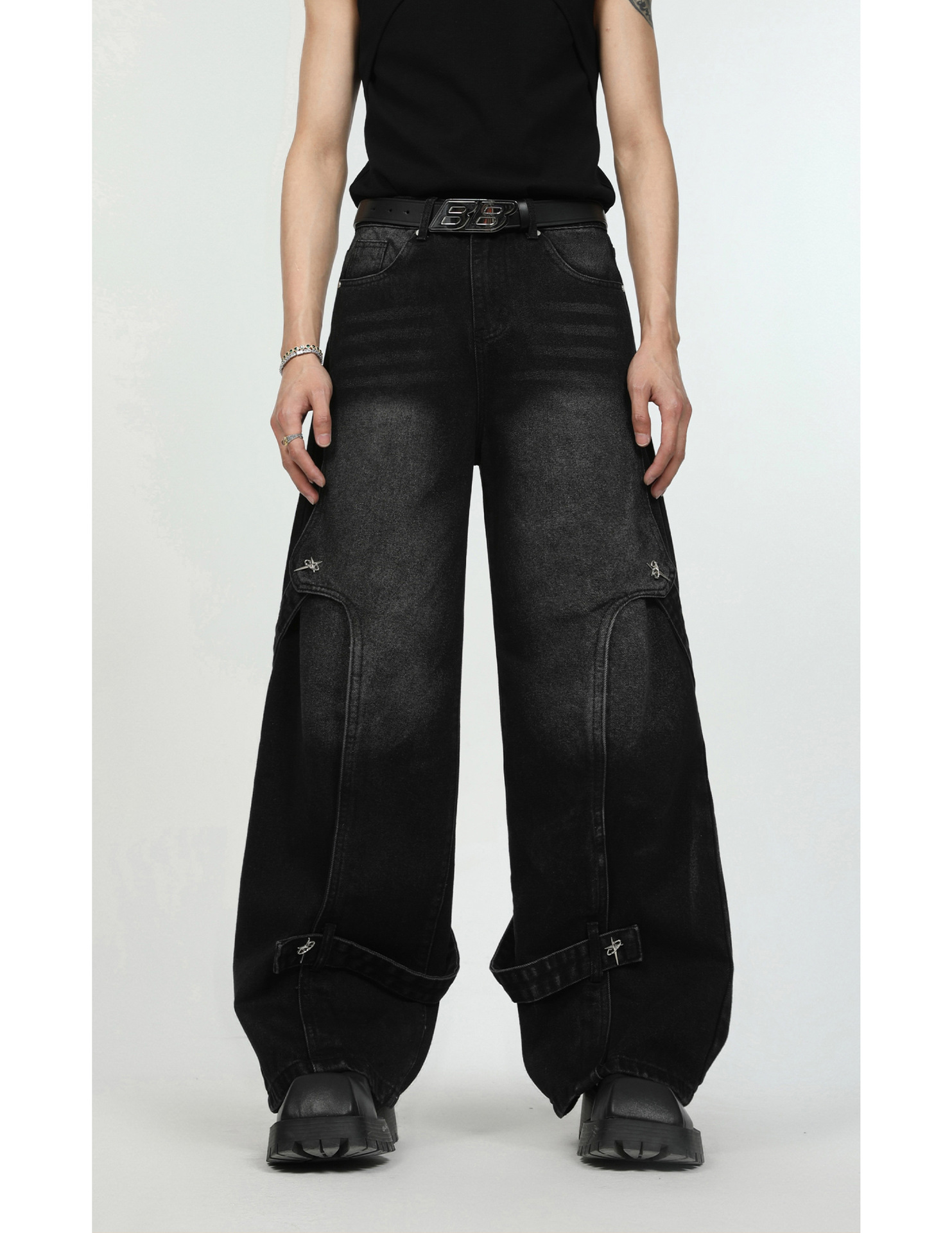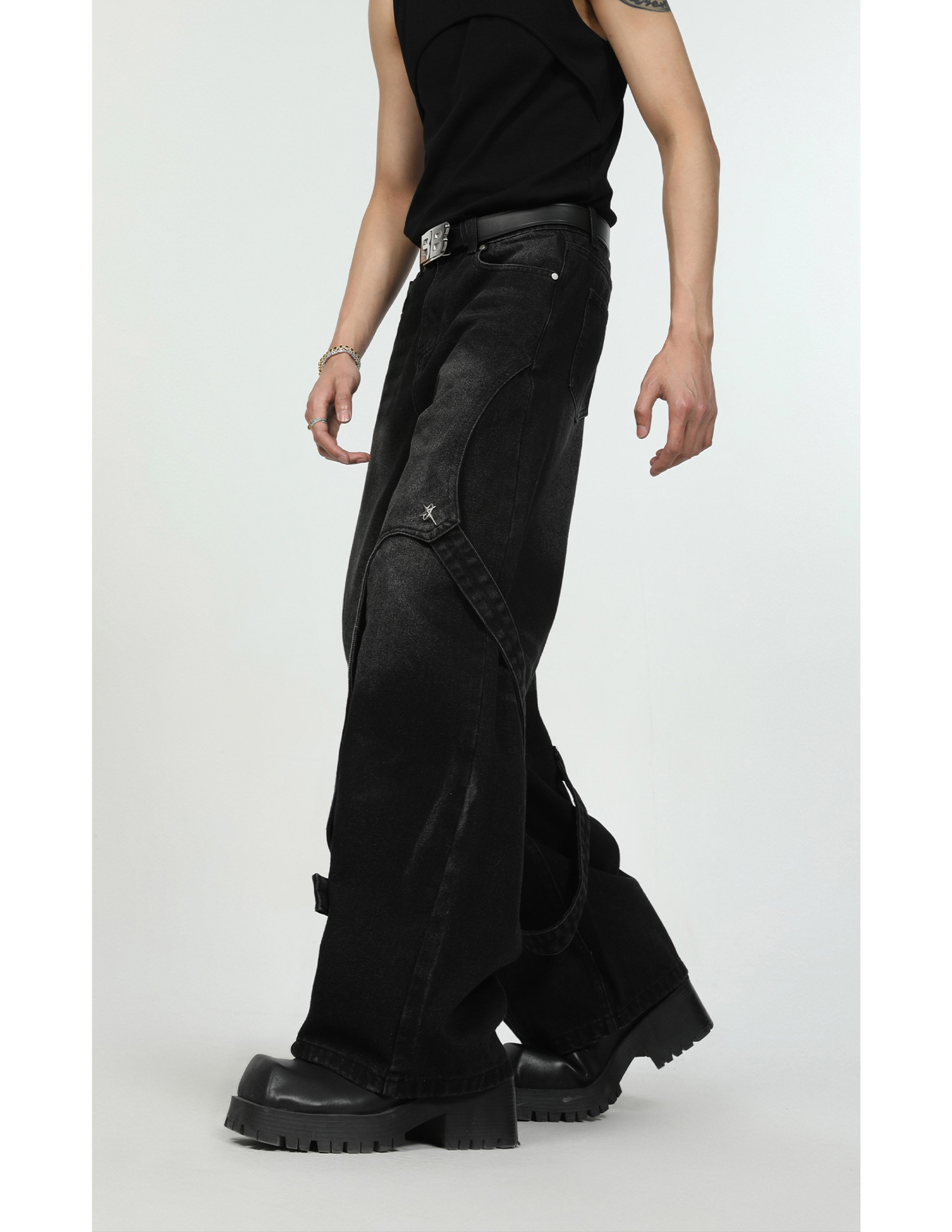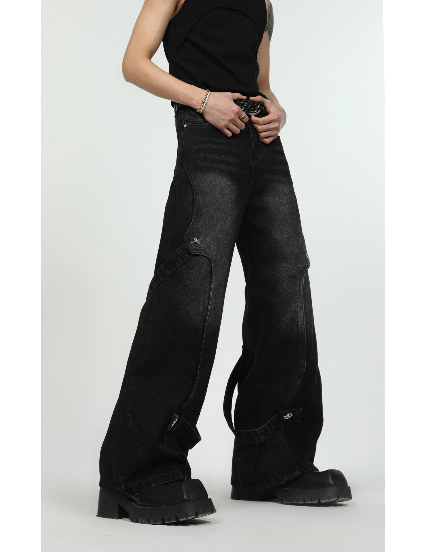 미국식 바이브 마이크로 스트랩 앤티크 청바지 남성과 여성의 느슨한 스트레이트 레트로 틈새 할란 바지