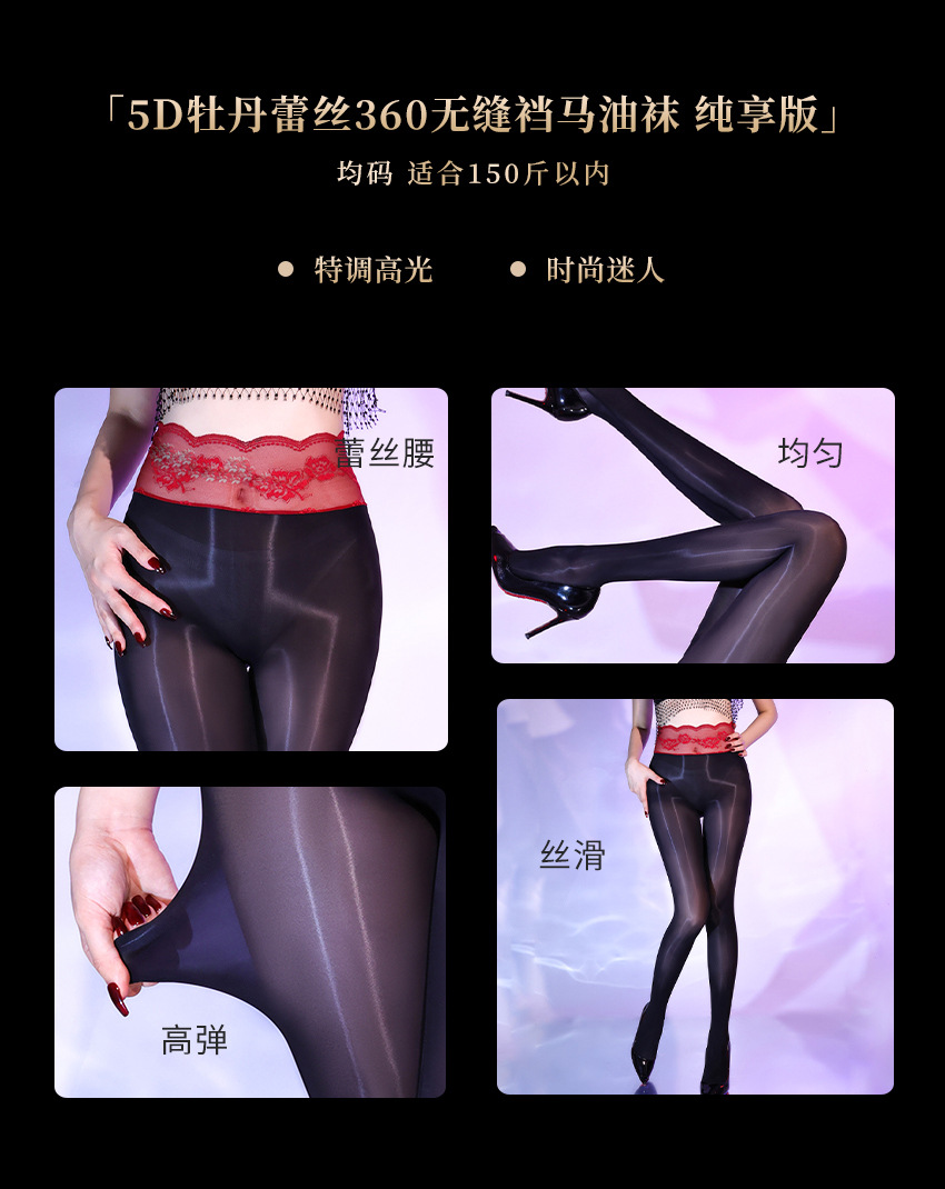 모란 레이스 허리 360 원활한 5D 오일 밝은 섹시한 블랙 실크 오픈 팬티 스타킹 여성 유혹 팬티 스타킹