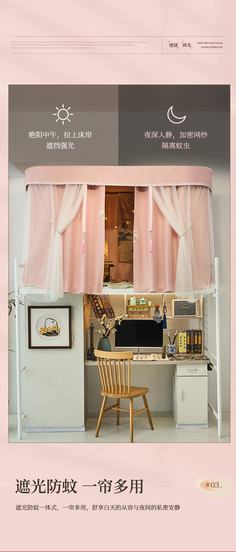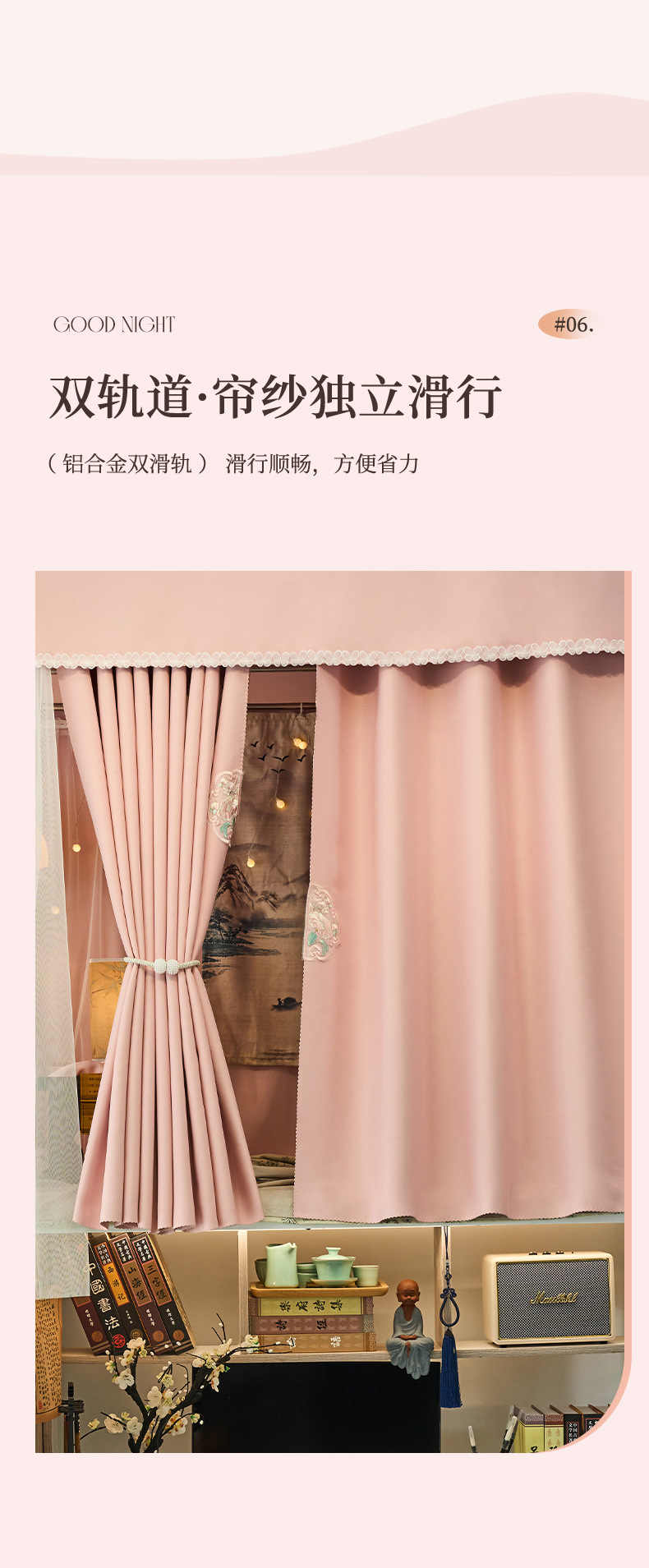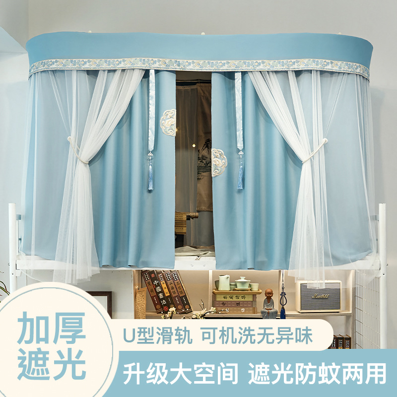 새로운 중국 스타일 대학생 기숙사 침대 커튼 모기장 통합 기숙사 침대 U 자형 트랙 강한 음영 침대 인클로징 천