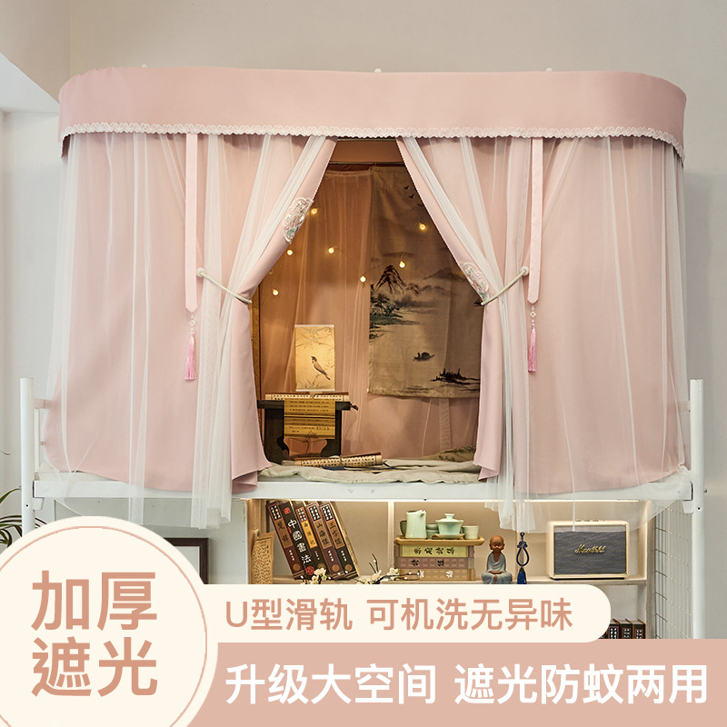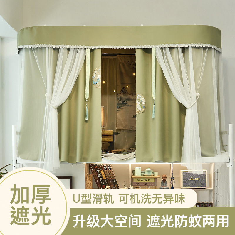 새로운 중국 스타일 대학생 기숙사 침대 커튼 모기장 통합 기숙사 침대 U 자형 트랙 강한 음영 침대 인클로징 천스토어 가기
