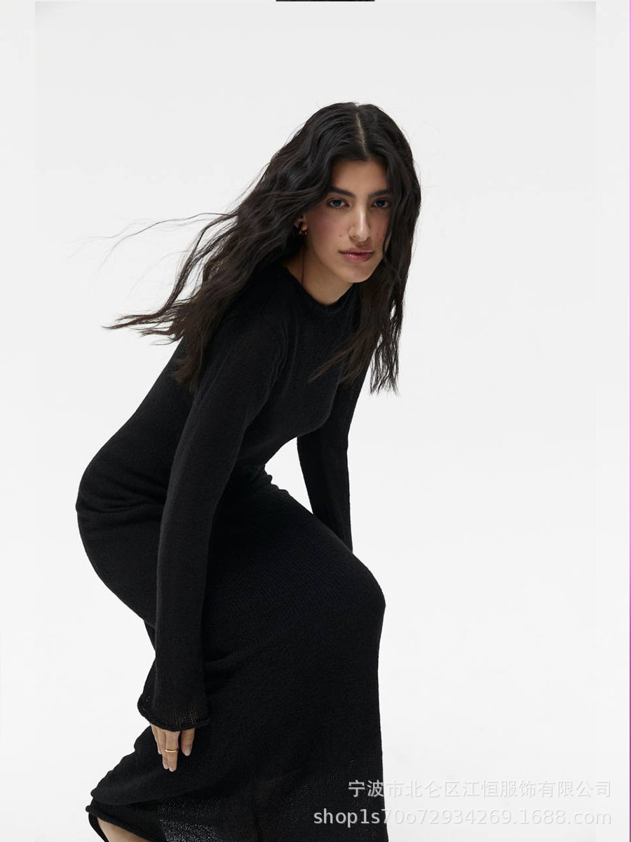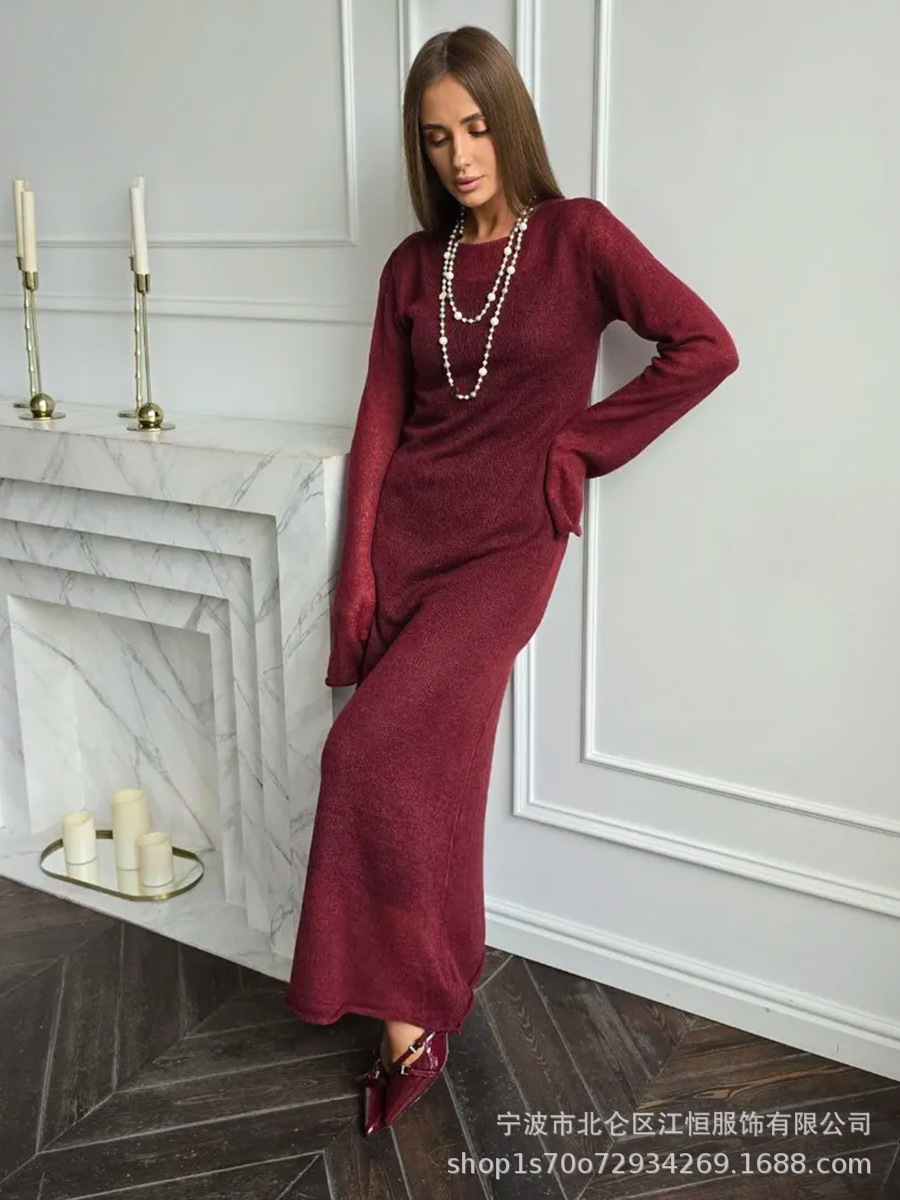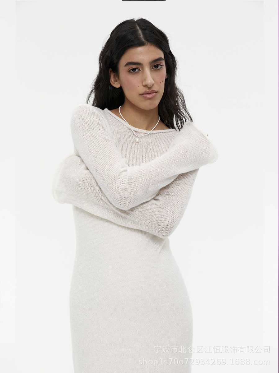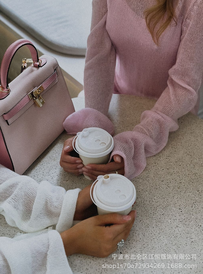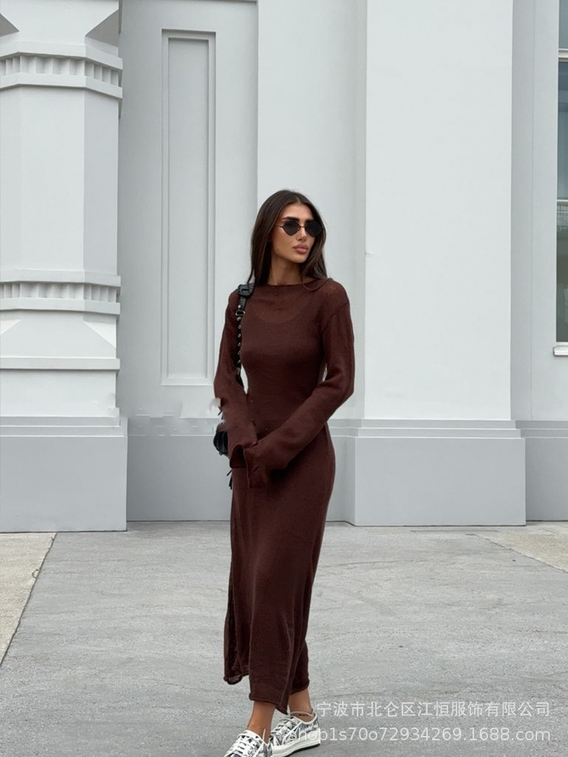 2025 중공 핑크 힙 커버 니트 롱 스커트 유럽과 미국의 시스루 슬림 드레스 + 베스트 드레스 투피스 세트스토어 가기
