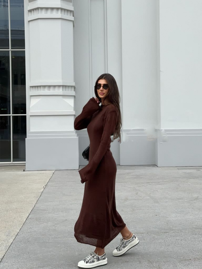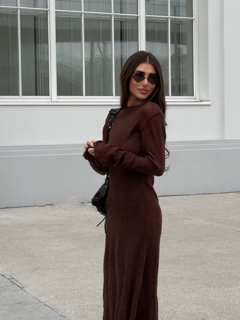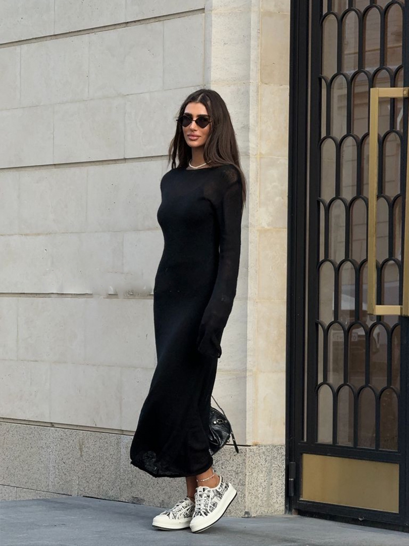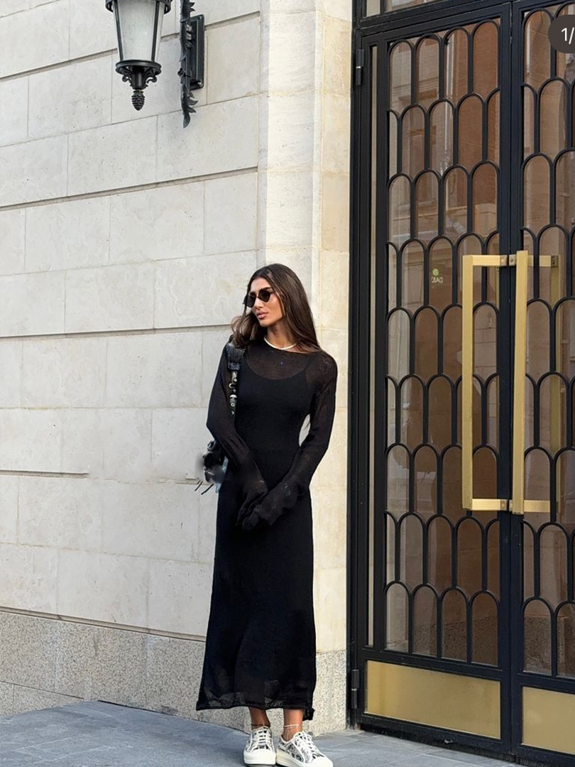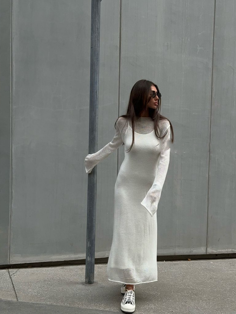 2025 중공 핑크 힙 커버 니트 롱 스커트 유럽과 미국의 시스루 슬림 드레스 + 베스트 드레스 투피스 세트스토어 가기