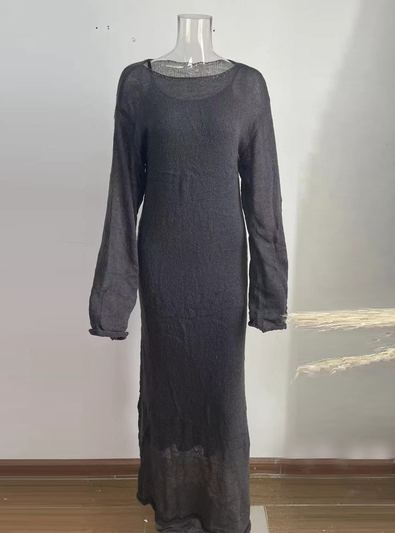 2025 중공 핑크 힙 커버 니트 롱 스커트 유럽과 미국의 시스루 슬림 드레스 + 베스트 드레스 투피스 세트