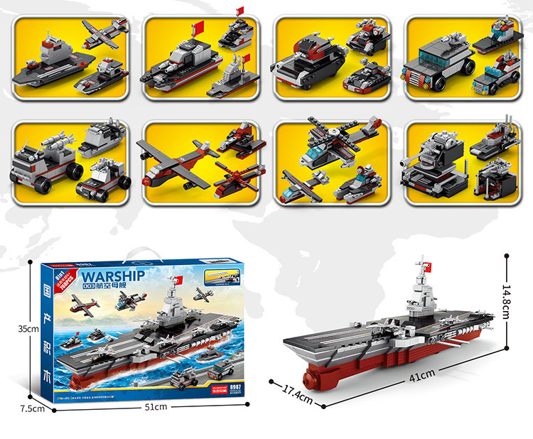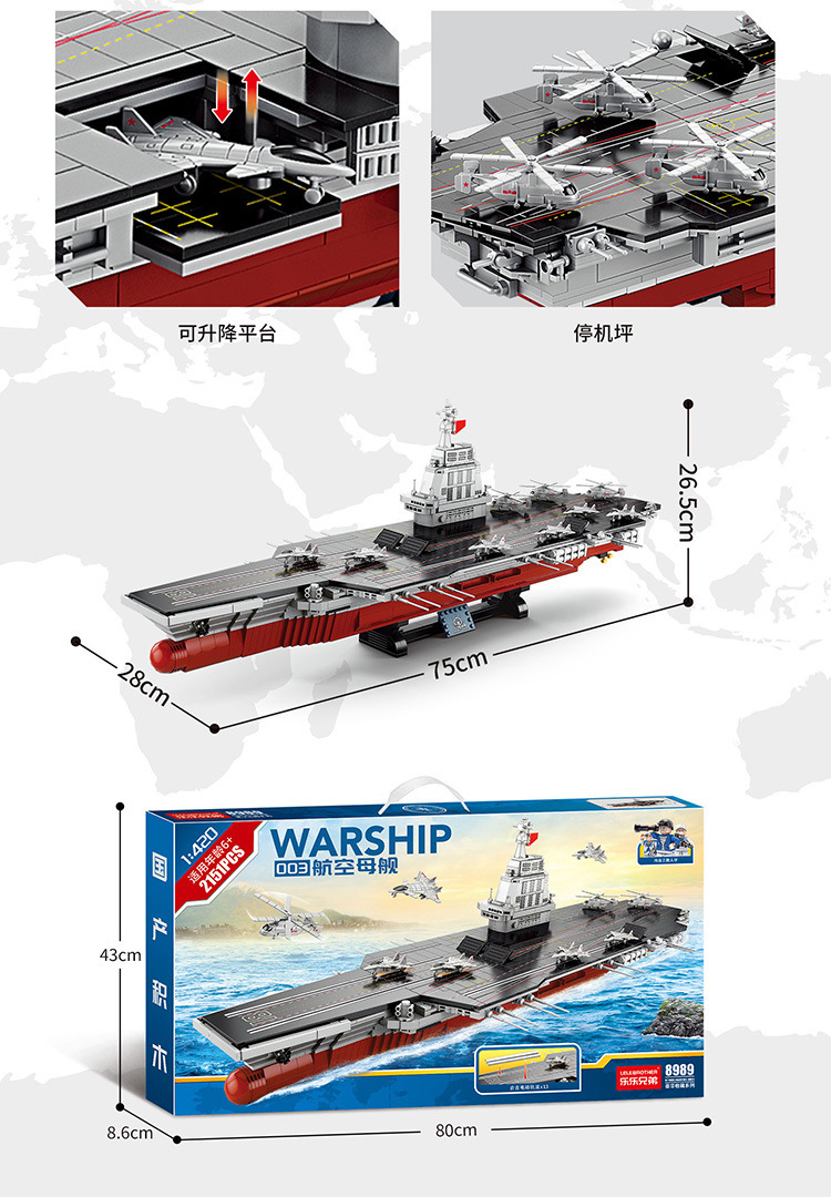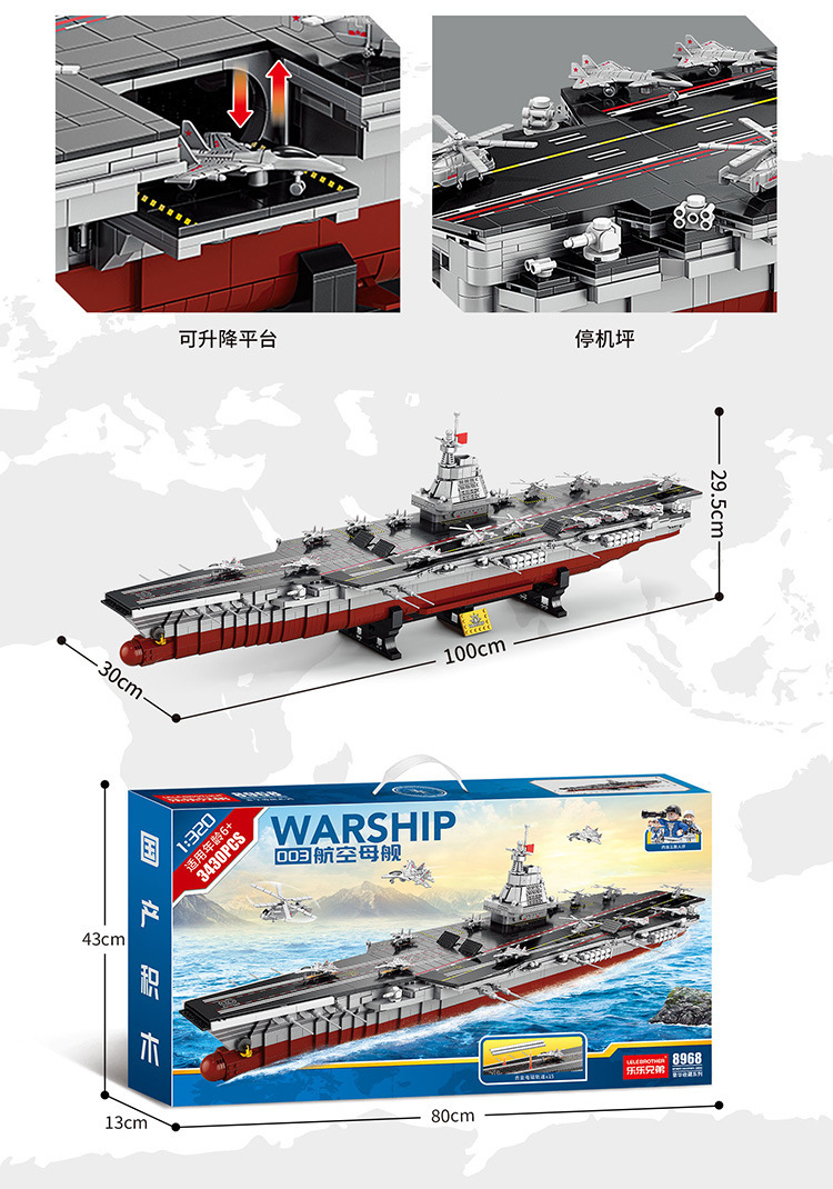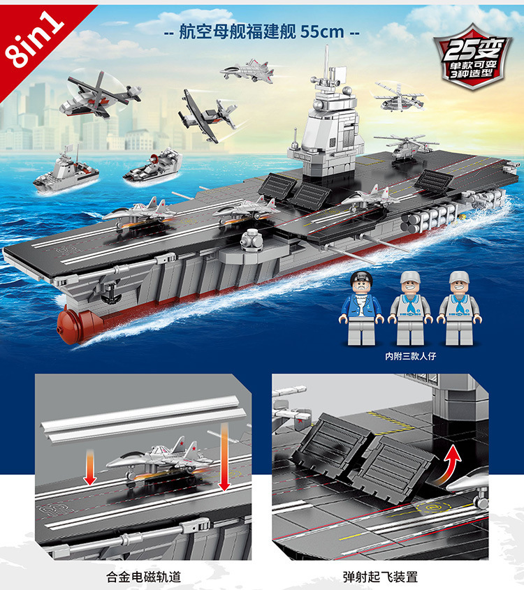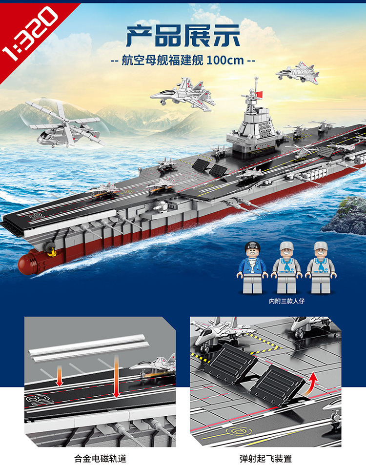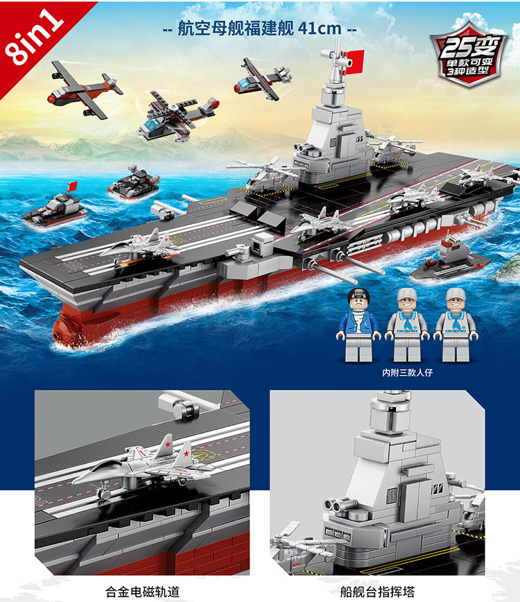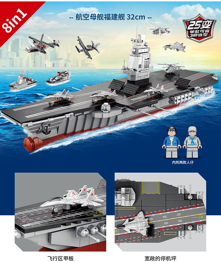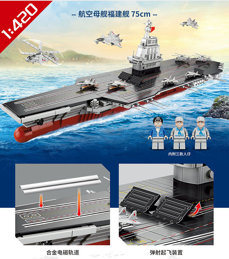 Lele Brothers 8987 빌딩 블록 항공기 캐리어 Fujian 선박 모델 어린이 교육 조립 장난감 어려움 소년 선물스토어 가기
