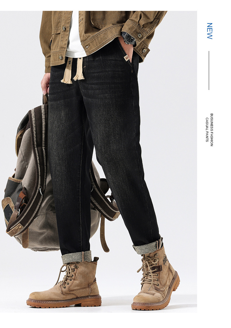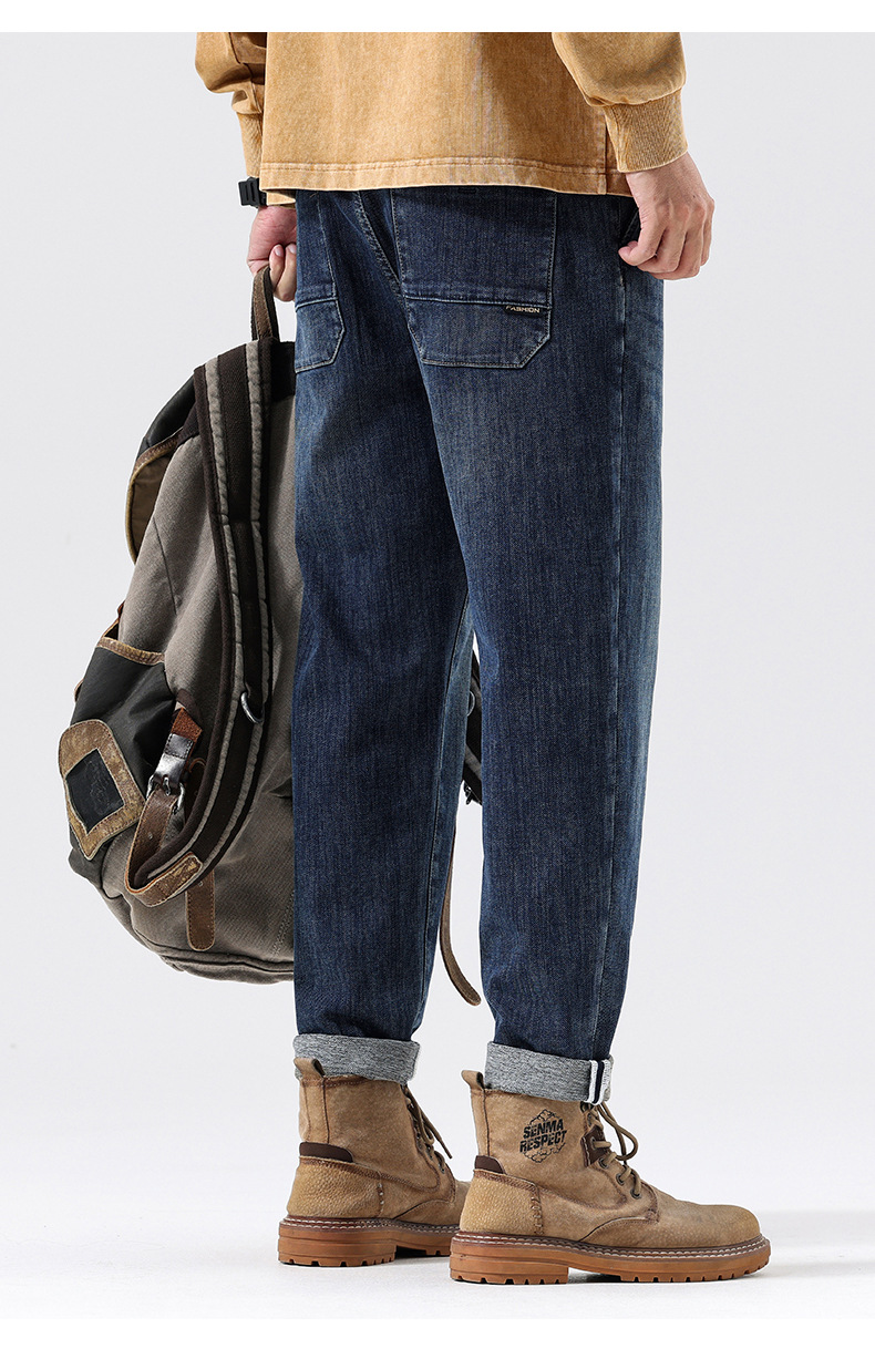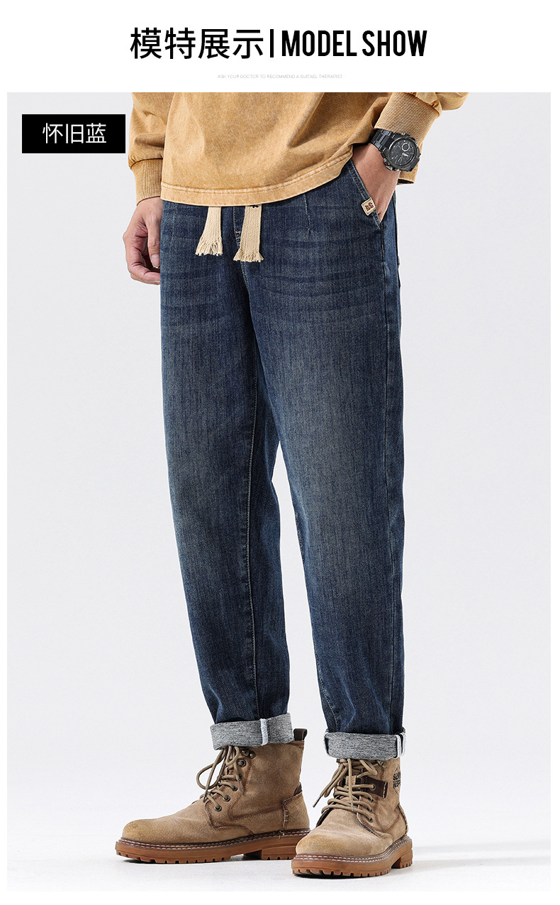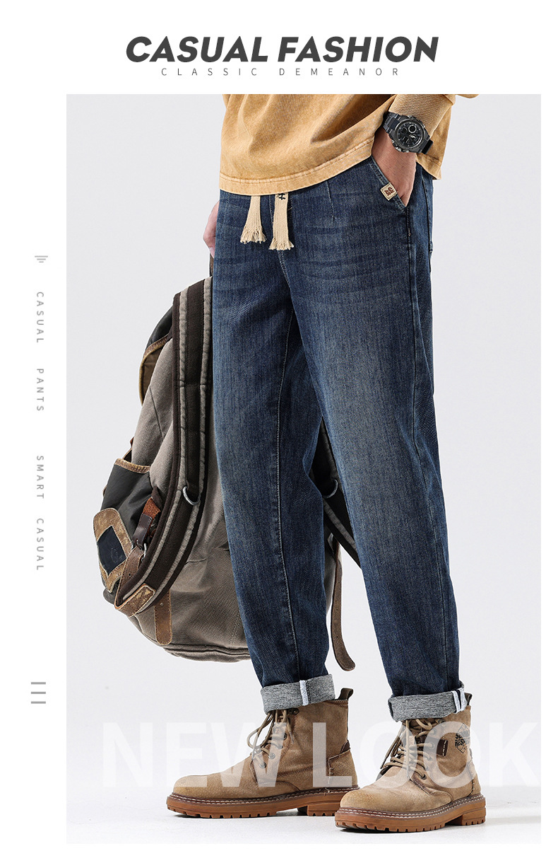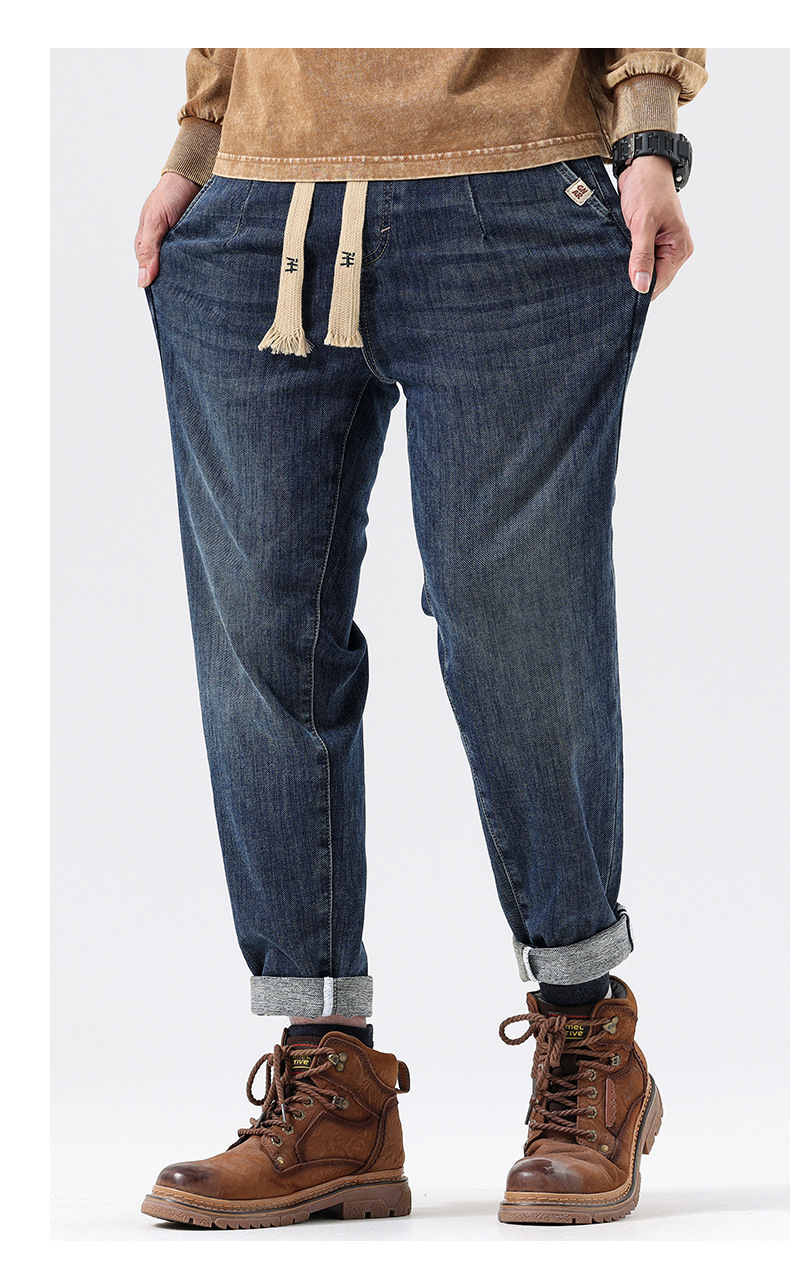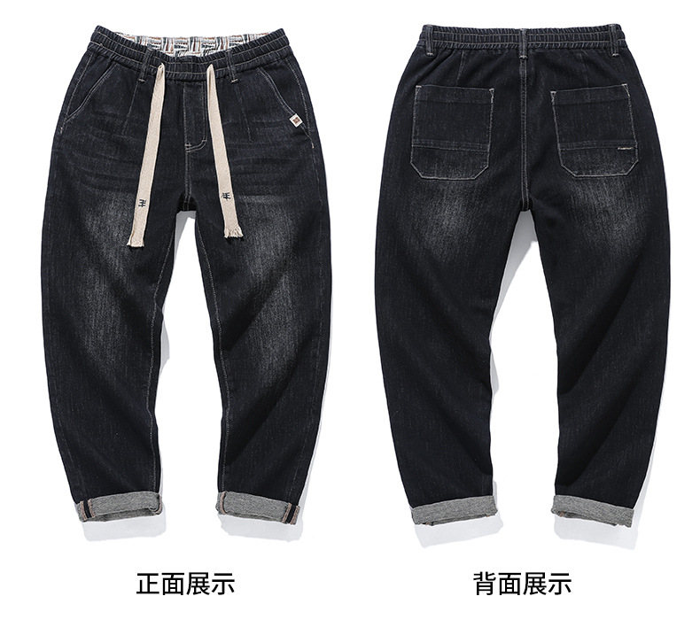 공장 직접 공급 가을과 겨울 새로운 탄성 허리 스포츠 하렘 바지 남자 하이 퀄리티 중공업 플러스 사이즈 데님 바지스토어 가기