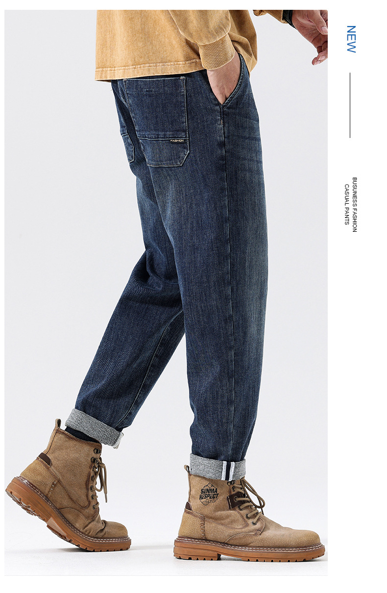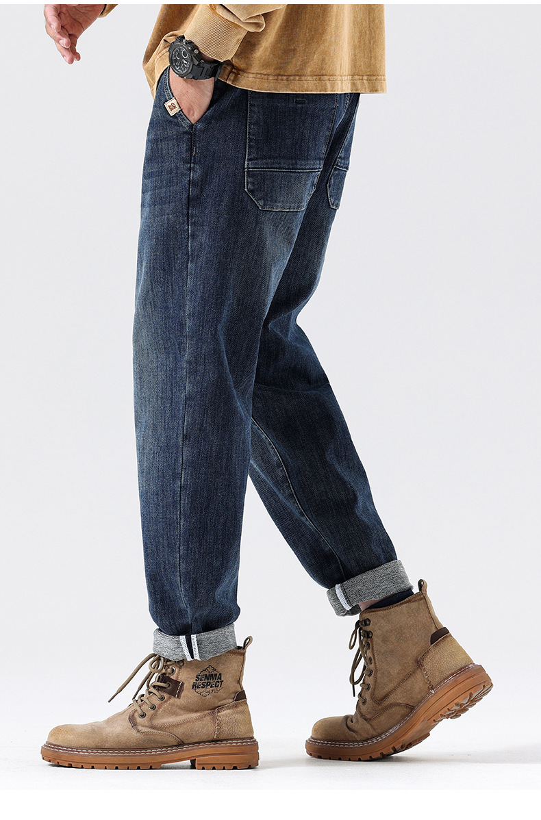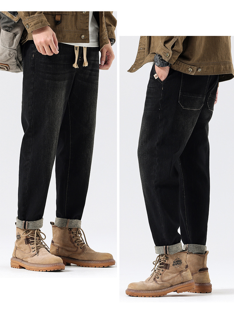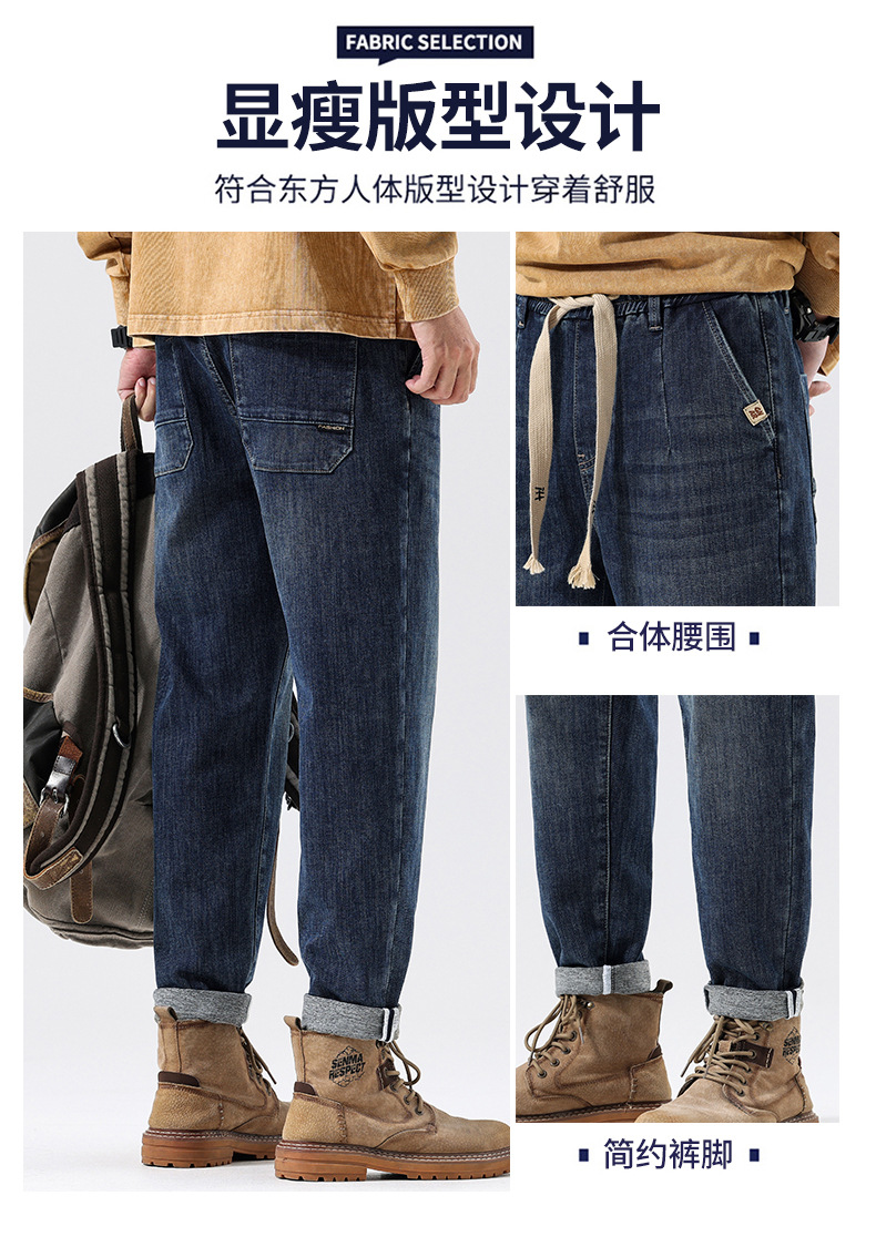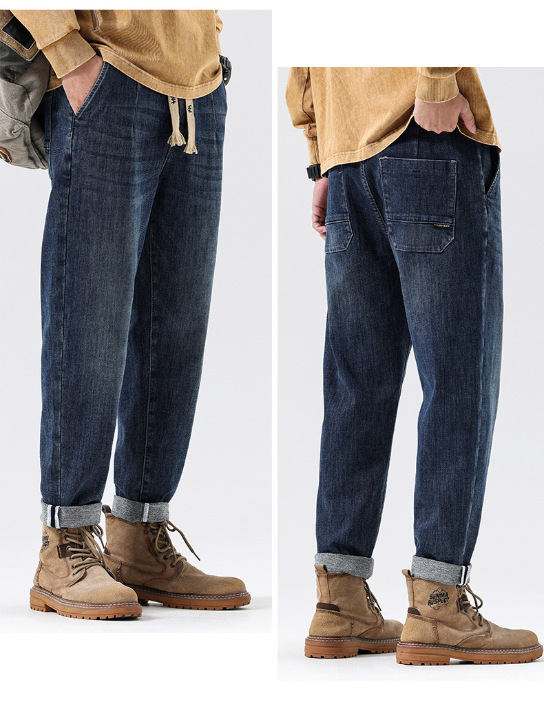 공장 직접 공급 가을과 겨울 새로운 탄성 허리 스포츠 하렘 바지 남자 하이 퀄리티 중공업 플러스 사이즈 데님 바지스토어 가기