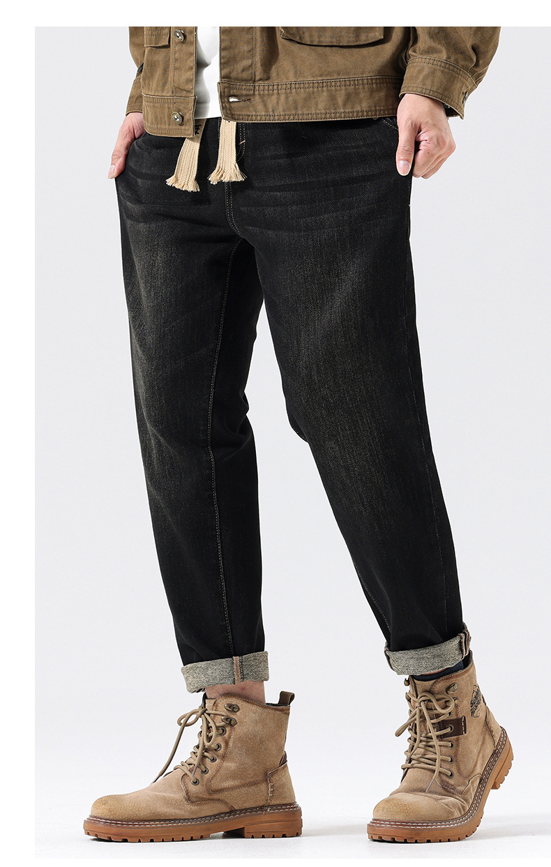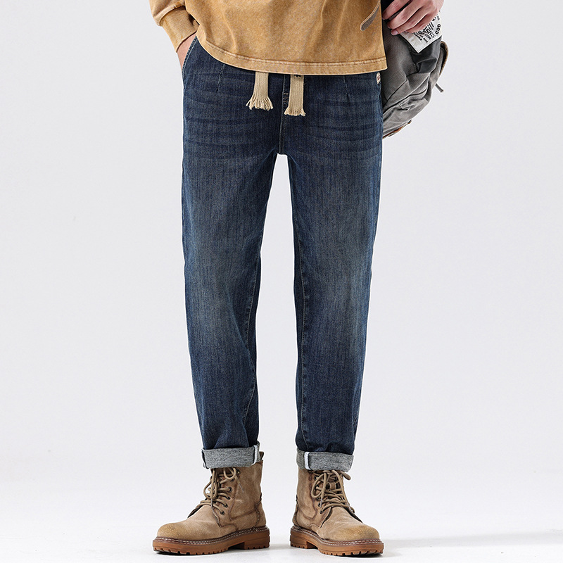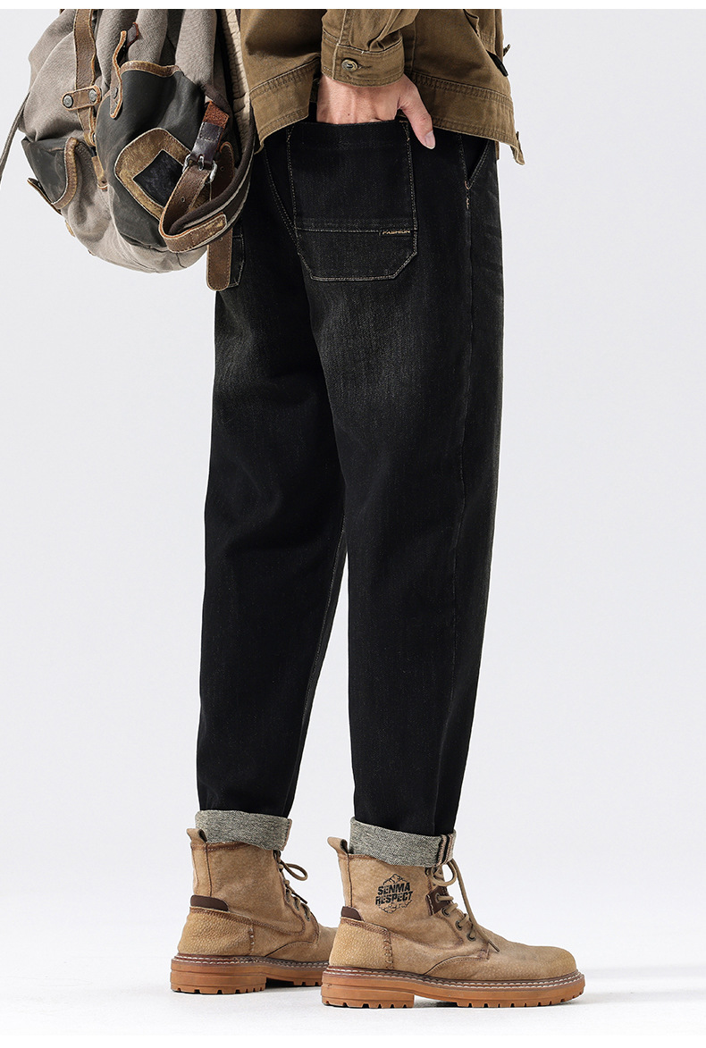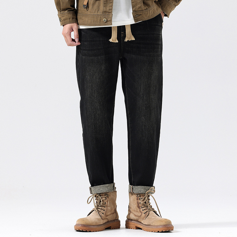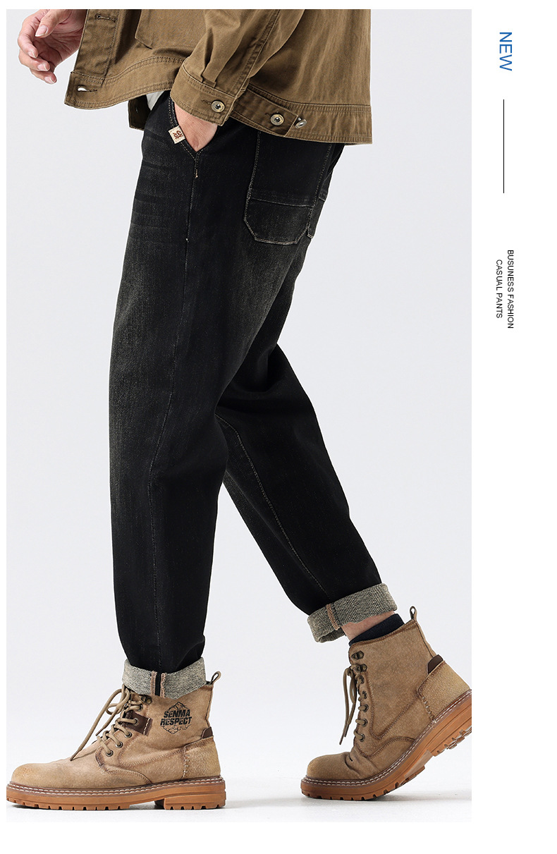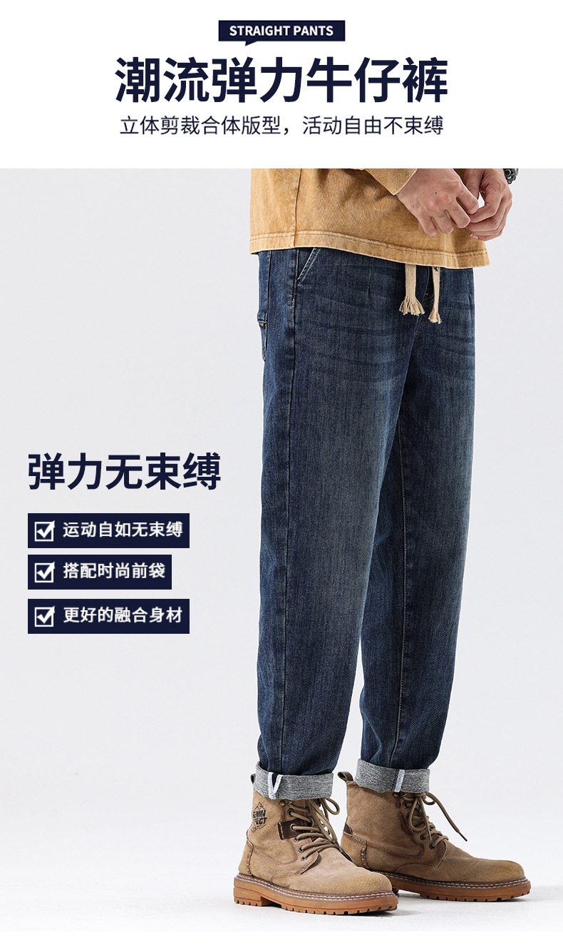 공장 직접 공급 가을과 겨울 새로운 탄성 허리 스포츠 하렘 바지 남자 하이 퀄리티 중공업 플러스 사이즈 데님 바지스토어 가기