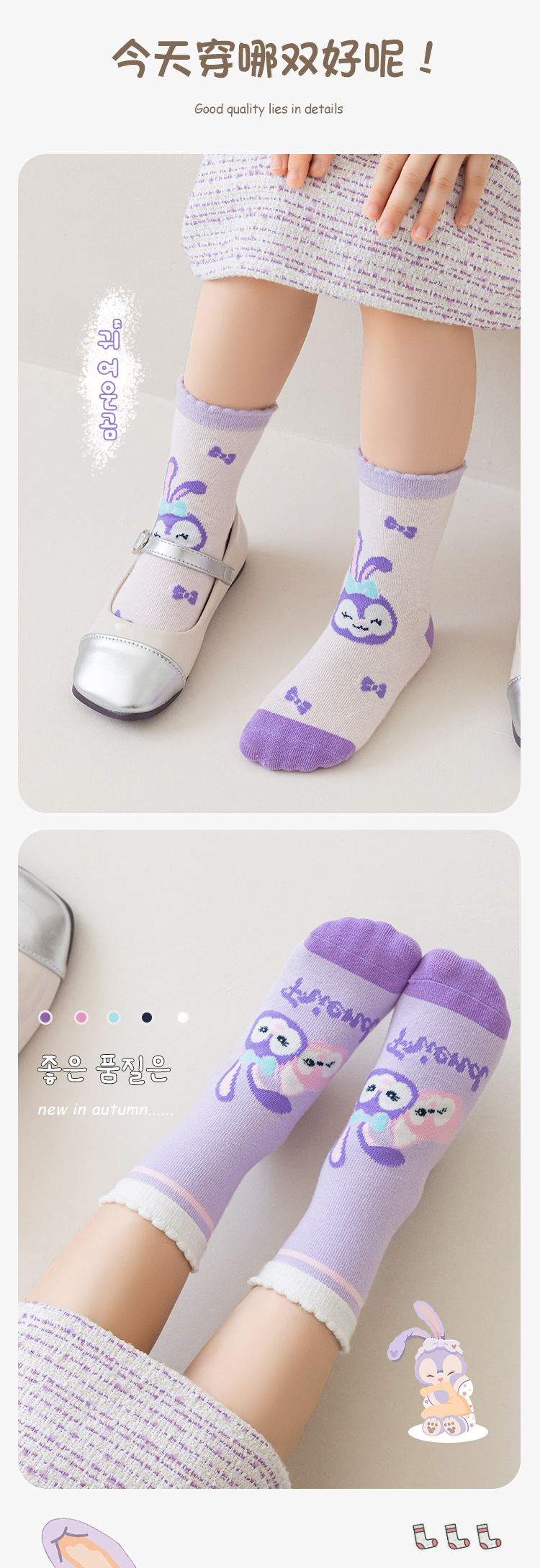 어린이 양말 24 년 가을과 겨울 별 토끼 소녀 양말 만화 튜브 양말면 큰 어린이 높은 탄성 어린이 양말 도매스토어 가기