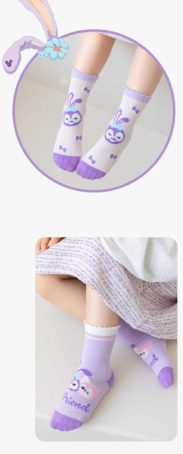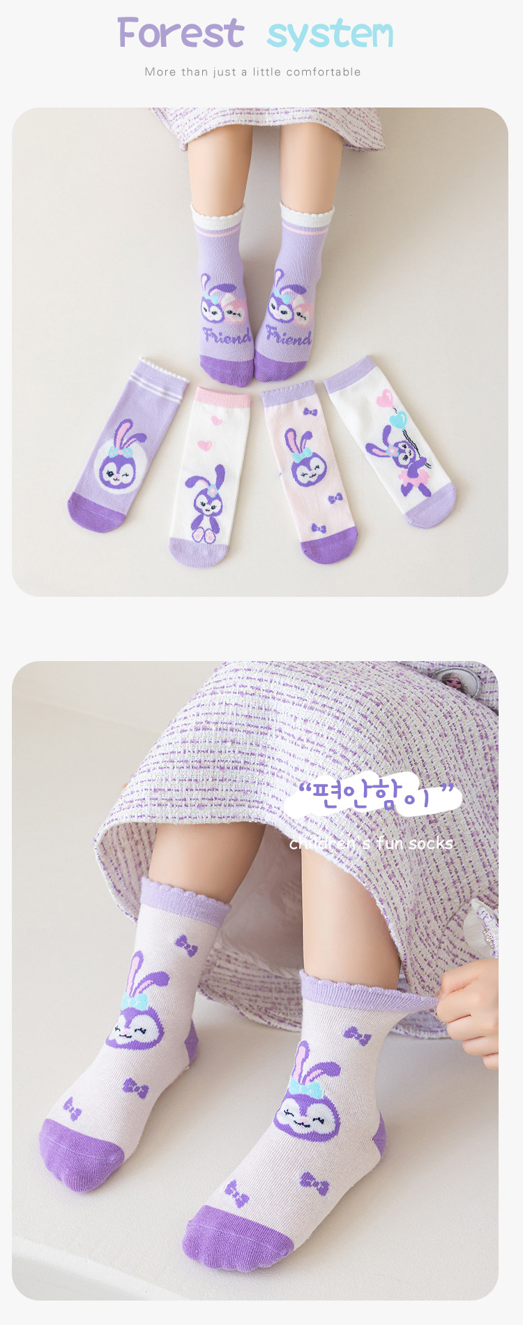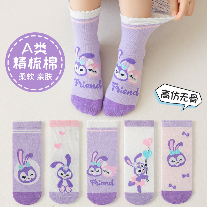 어린이 양말 24 년 가을과 겨울 별 토끼 소녀 양말 만화 튜브 양말면 큰 어린이 높은 탄성 어린이 양말 도매