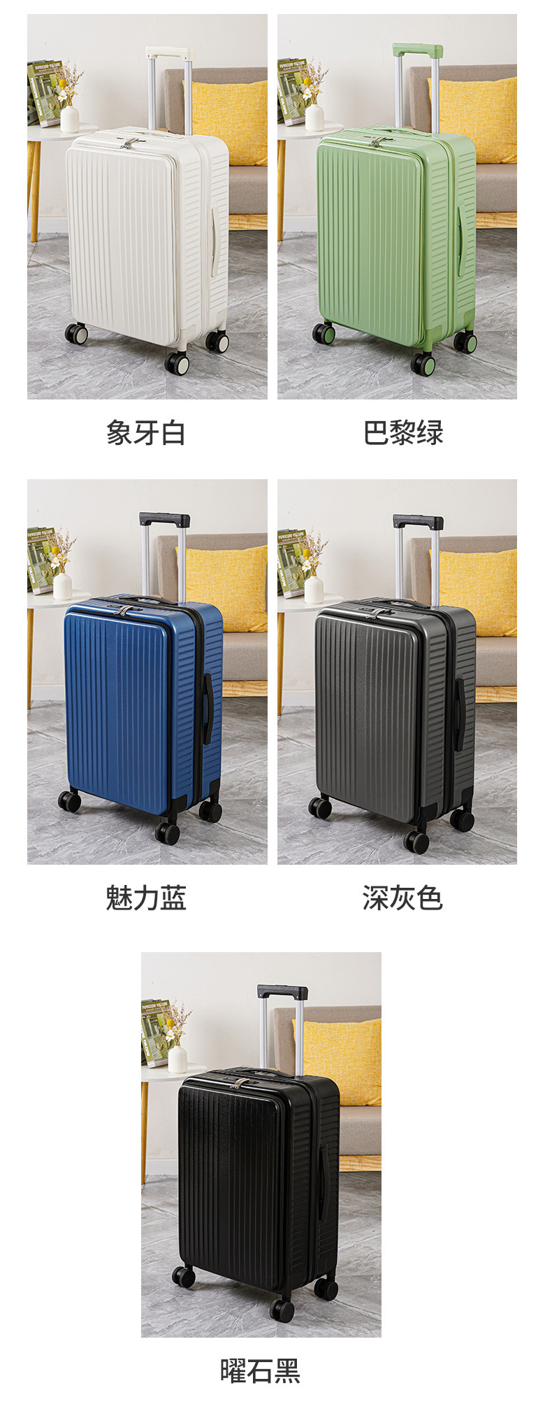 국경 간 다기능 전면 개방 대용량 수하물 상자 여성의 확장 가능한 트롤리 케이스 유니버설 휠 가방 측면 개방스토어 가기