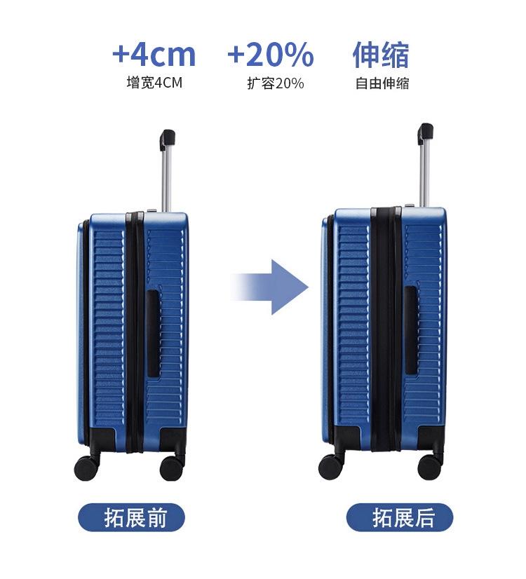 국경 간 다기능 전면 개방 대용량 수하물 상자 여성의 확장 가능한 트롤리 케이스 유니버설 휠 가방 측면 개방