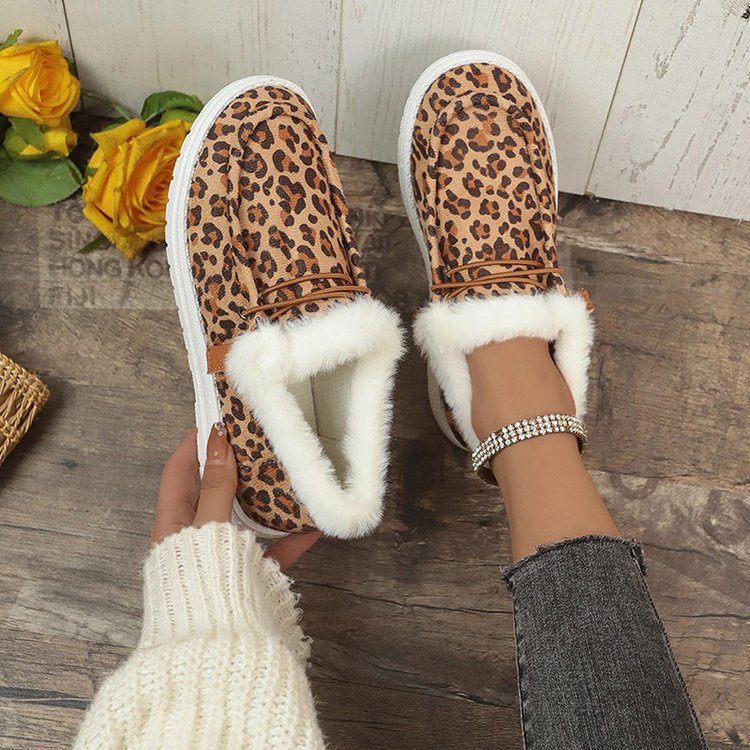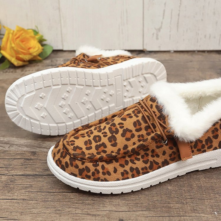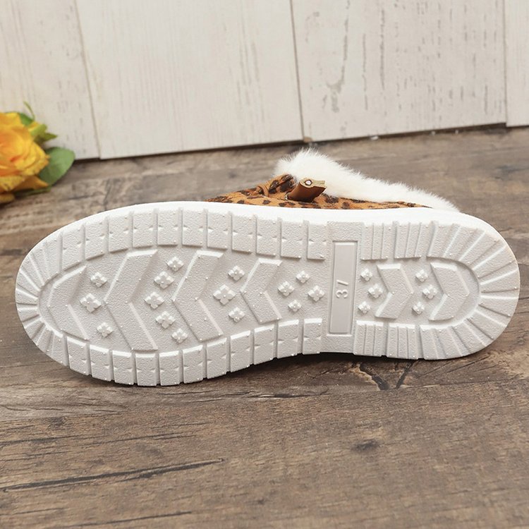 2024 국경 겨울 새로운 대외 무역 대형 여성 가을 및 겨울 레오파드 무늬 평평한 바닥 더미 플러스 사이즈 여성 신발