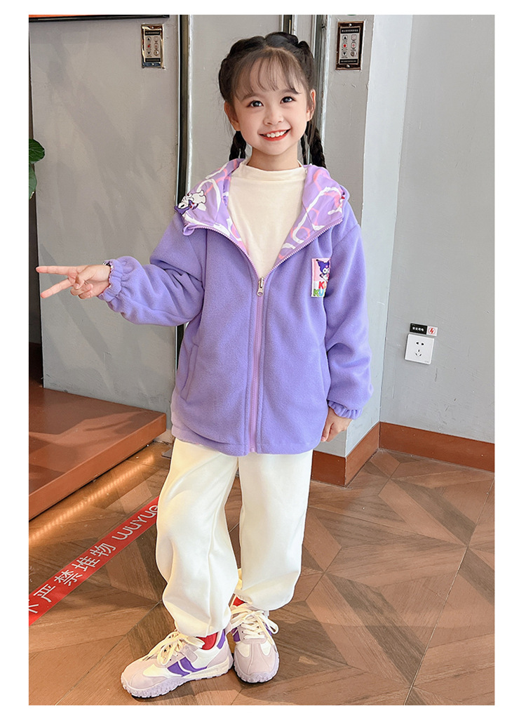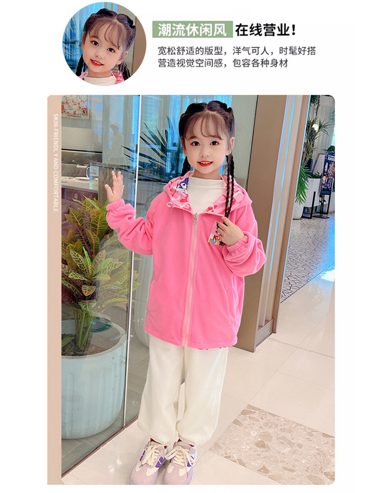 2024 새로운 소녀 양면 양면 착용 양털 재킷 방풍 봄 및 가을 서양식 중 큰 어린이 캐주얼 탑