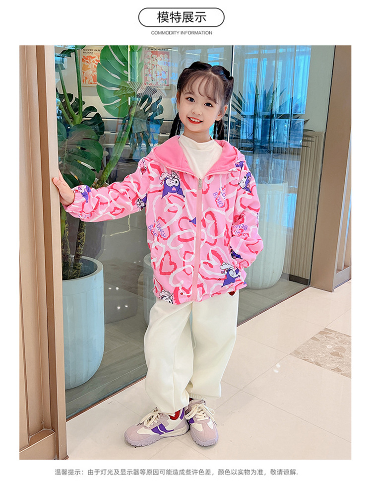 2024 새로운 소녀 양면 양면 착용 양털 재킷 방풍 봄 및 가을 서양식 중 큰 어린이 캐주얼 탑스토어 가기