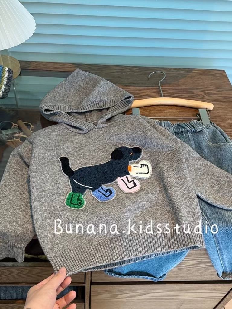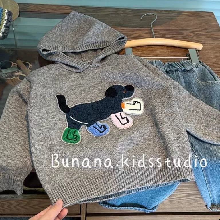 2025 가을 겨울 신상 여자 아기용 세련된 만화 강아지 스웨터 코트 한국 아동복 남자아이 후드 니트웨어스토어 가기
