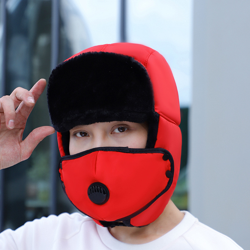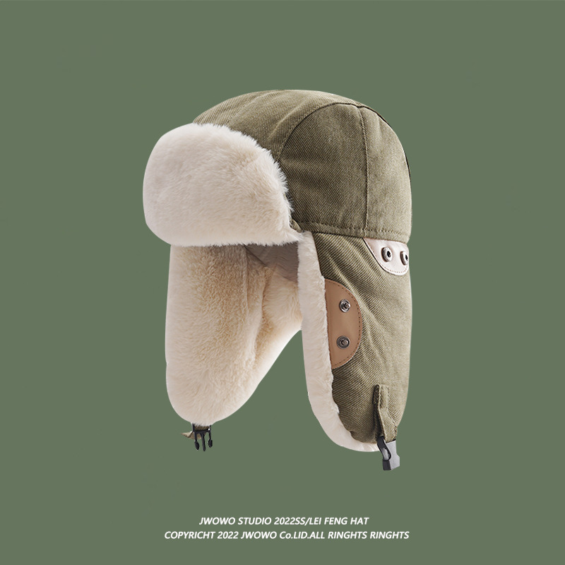 겨울 Lei Feng Hat 모조 토끼 머리 두꺼운 기모 감기 모자 야외 승마 방풍 귀 보호 얼굴 따뜻한 모자