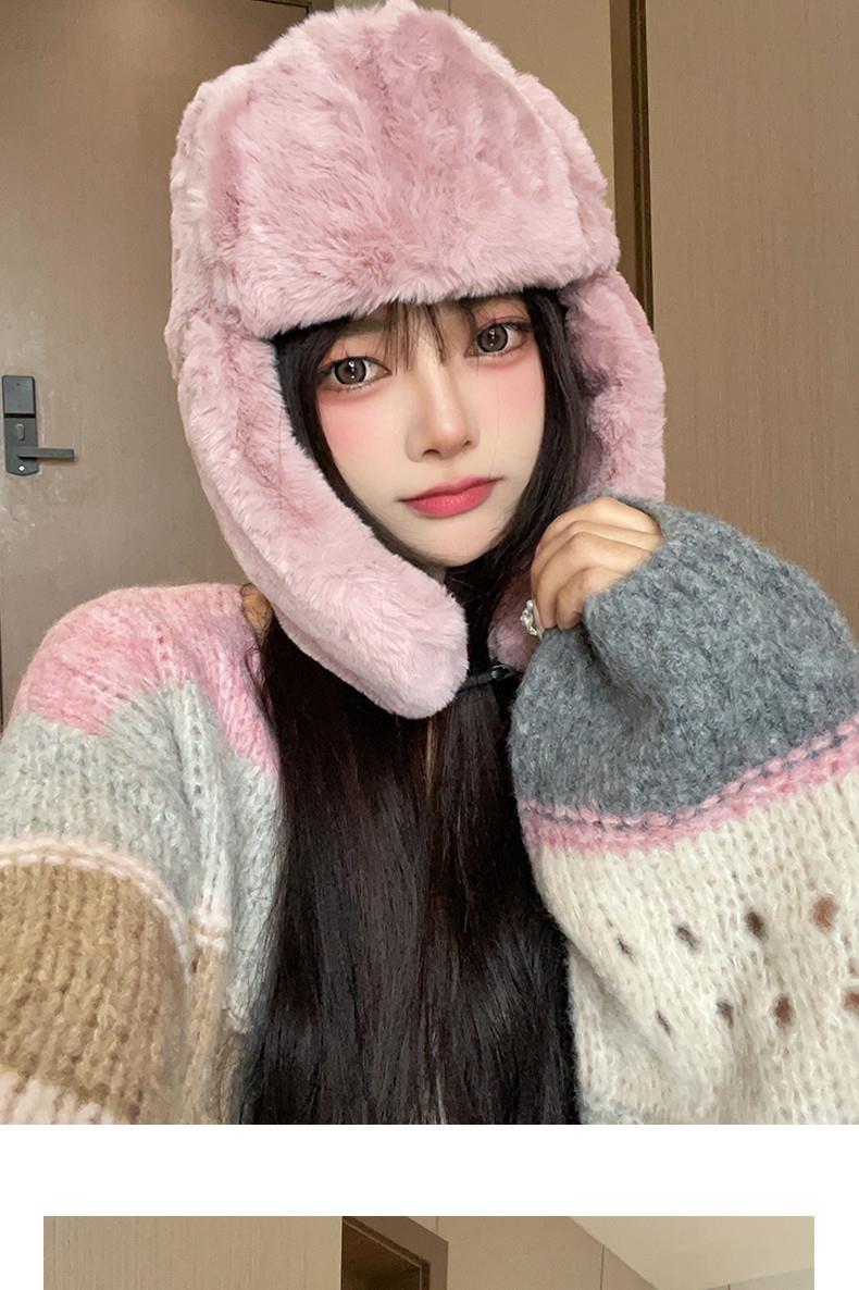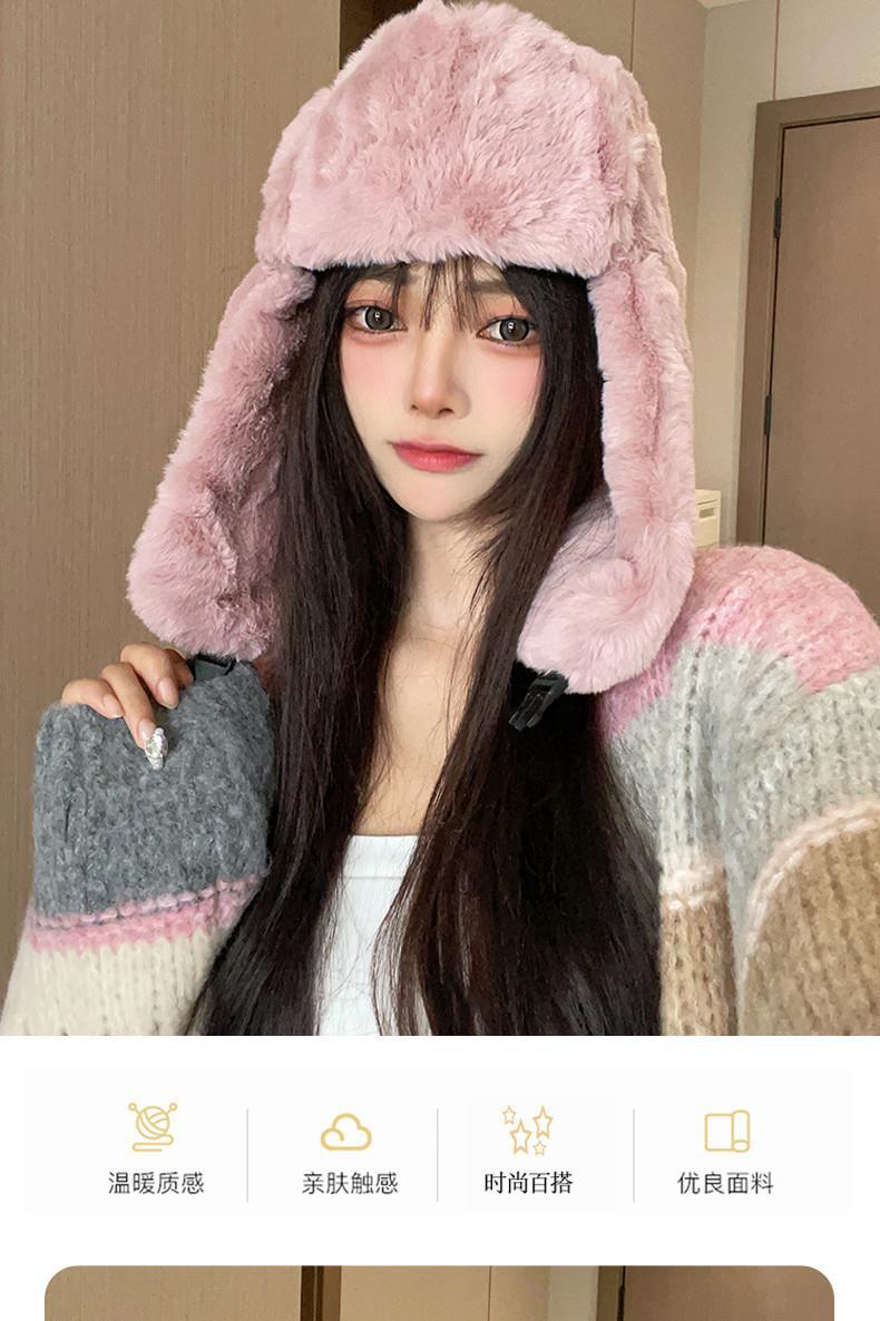 겨울 Lei Feng Hat 모조 토끼 머리 두꺼운 기모 감기 모자 야외 승마 방풍 귀 보호 얼굴 따뜻한 모자스토어 가기