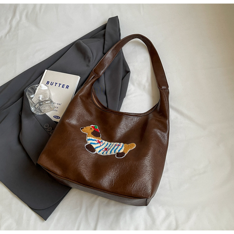 2024 새로운 게으른 스타일 대용량 어깨 가방 귀여운 만화 강아지 크로스 바디 여성 가방 캐주얼 휴대용 토트 백스토어 가기