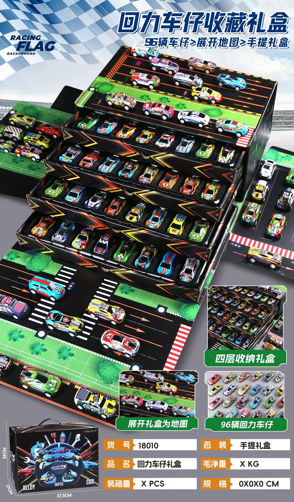• 풀백 자동차 96대 + 고급 선물 상자 [지도 포함]