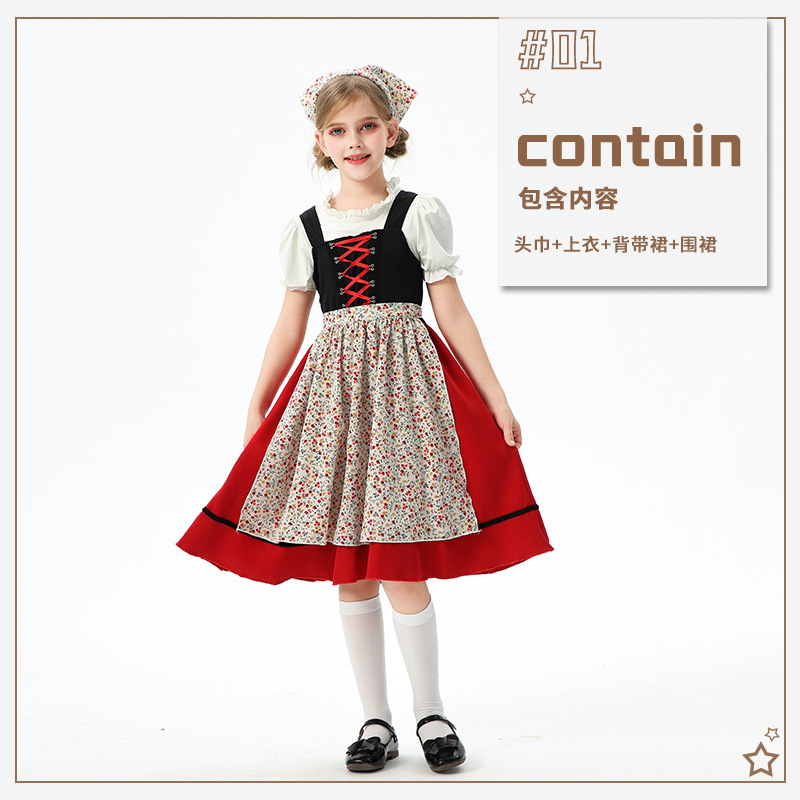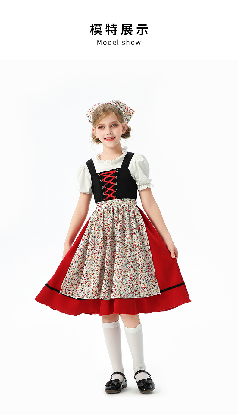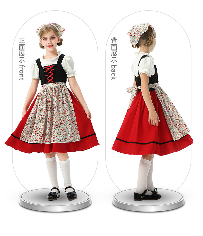 바이에른 어린이 의상 유럽 목가적 스타일 소녀 농장 매너 독일 옥토버페스트 메이드 의상