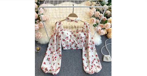 모리 스타일 달콤한 꽃 버블 슬리브 여성용 우드귀 교수형 넥 레이스 업 쉬폰 셔츠 탑스토어 가기