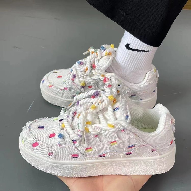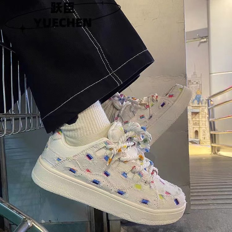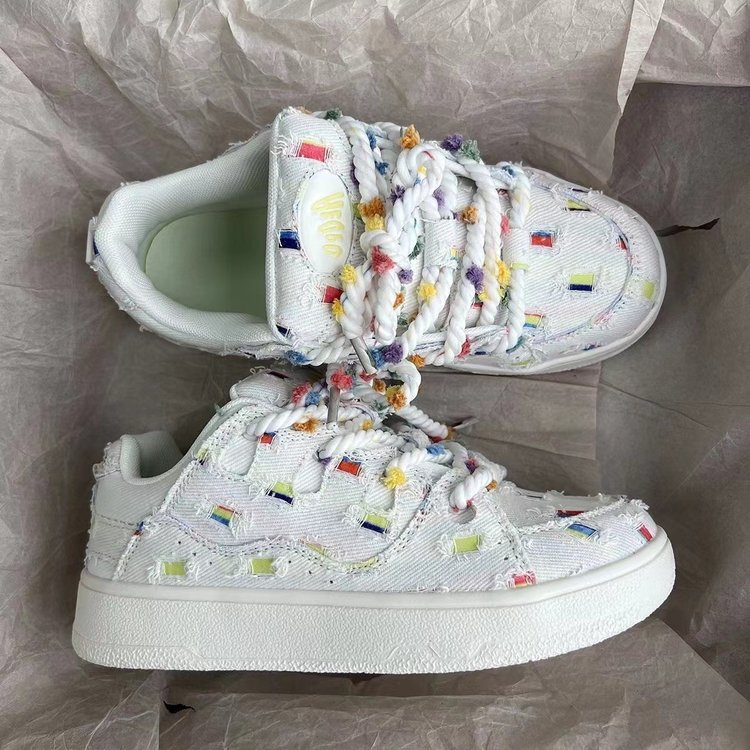 가을 2024 새로운 빈티지 홍콩 스타일 세련된 신발 레인보우 맨유 보드 신발 여성 화이트 신발 빵 신발스토어 가기