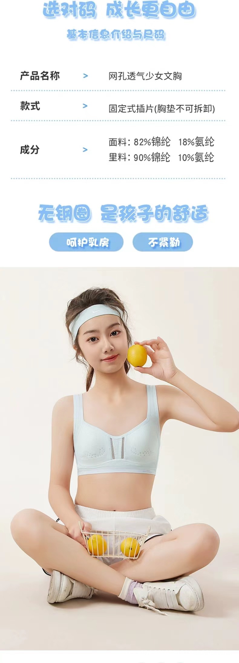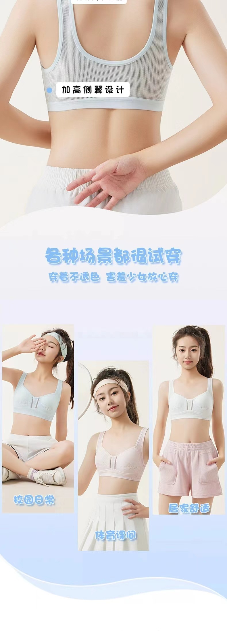 땀 흡수성 새로운 통기성 고등학생 발달 속옷 소녀의 아름다운 등 스포츠 편안한 교정 소녀의 충격 방지 브래지어스토어 가기