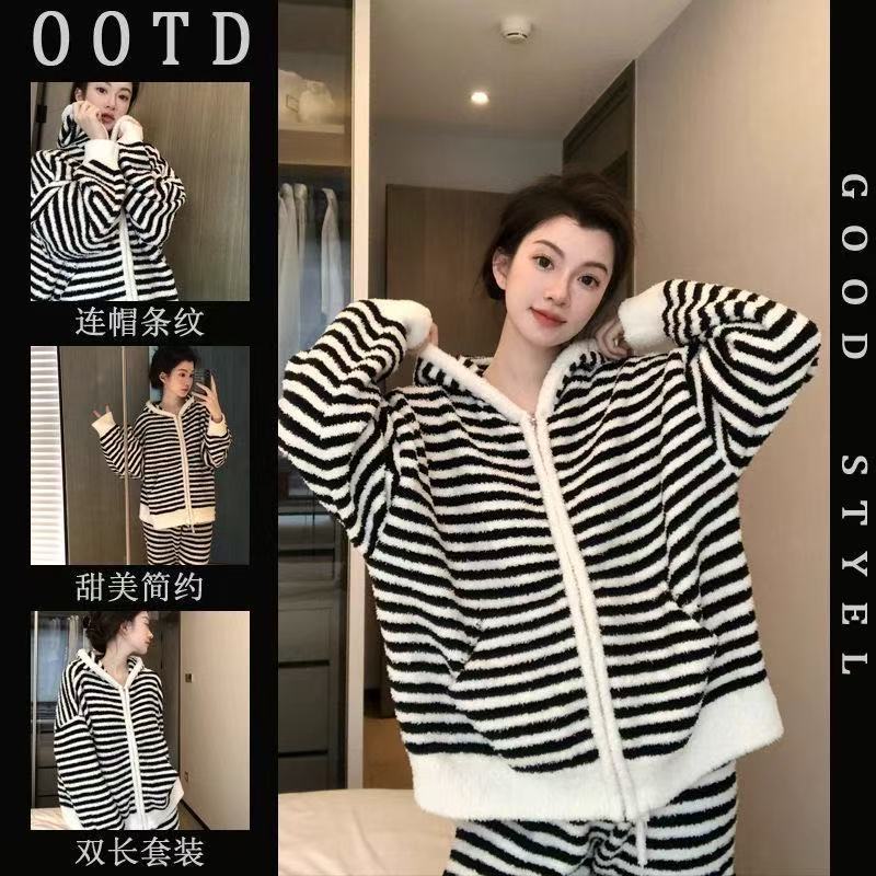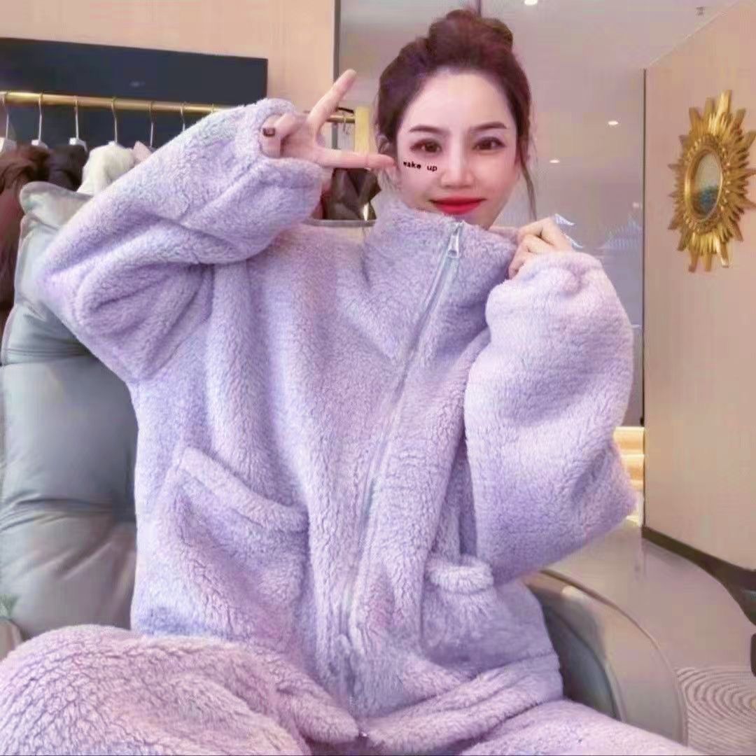 2025년 신상 코랄벨벳 커플 잠옷 여성용 겨울용 두꺼운 보온 홈웨어 루즈핏 투피스 세트스토어 가기