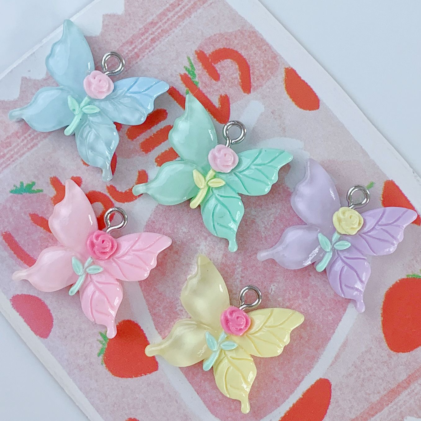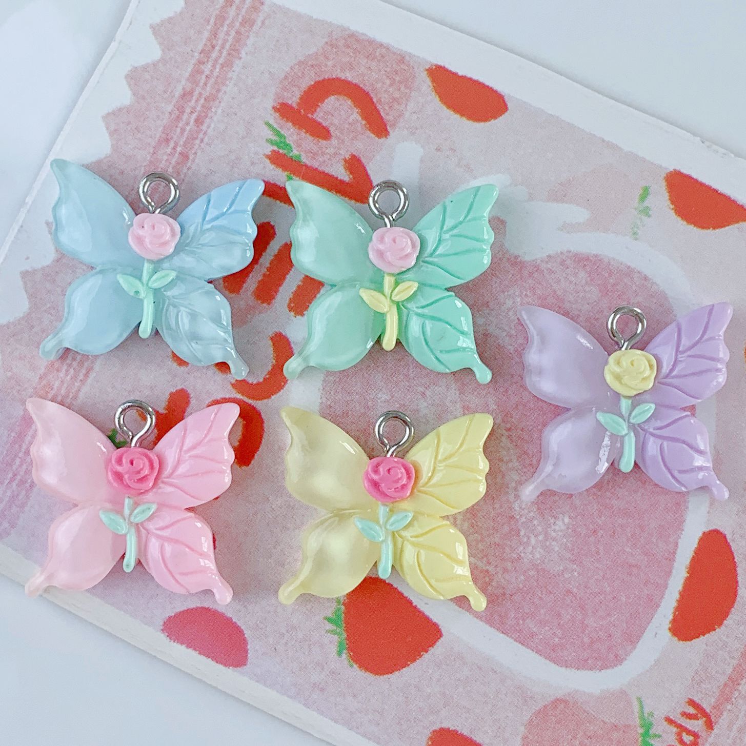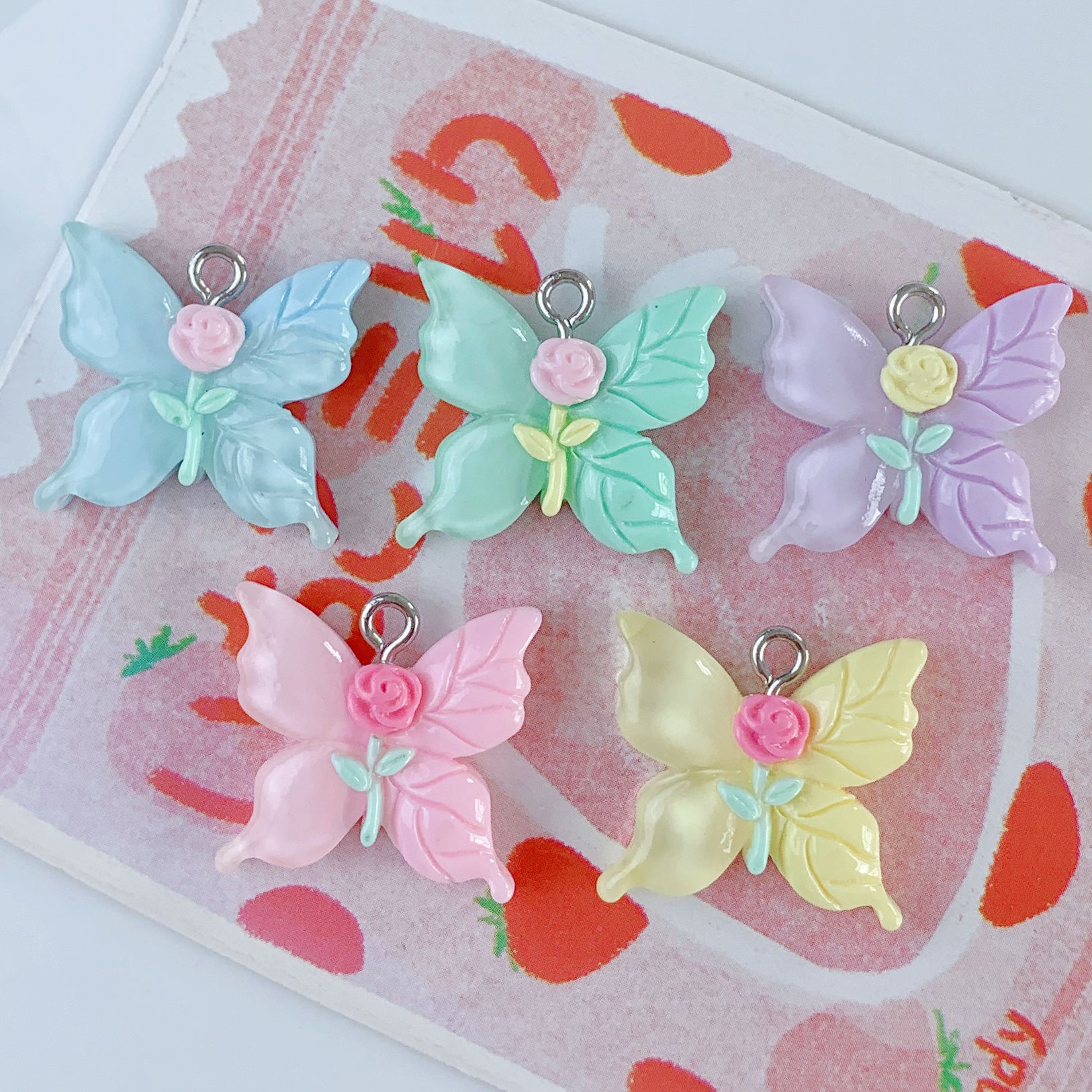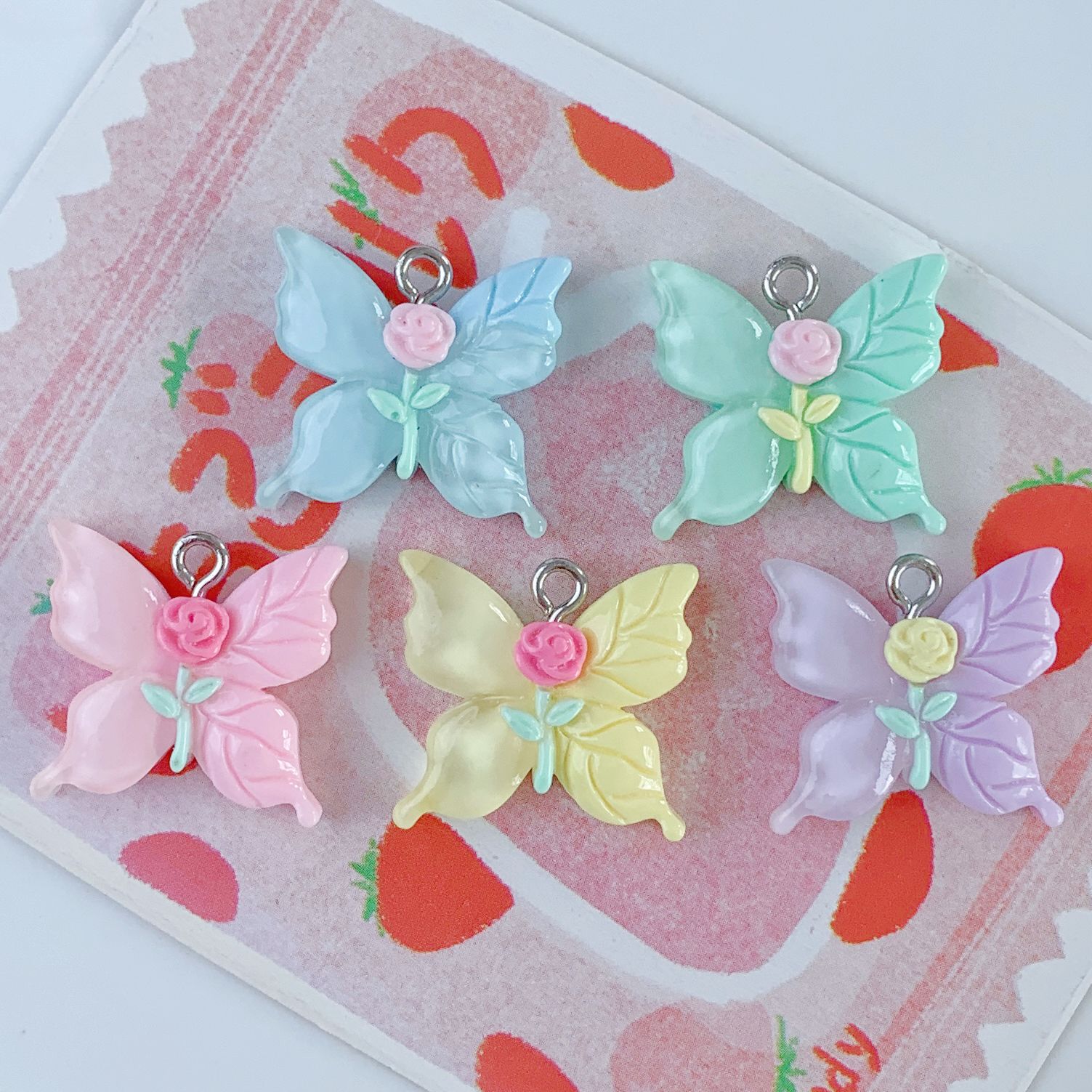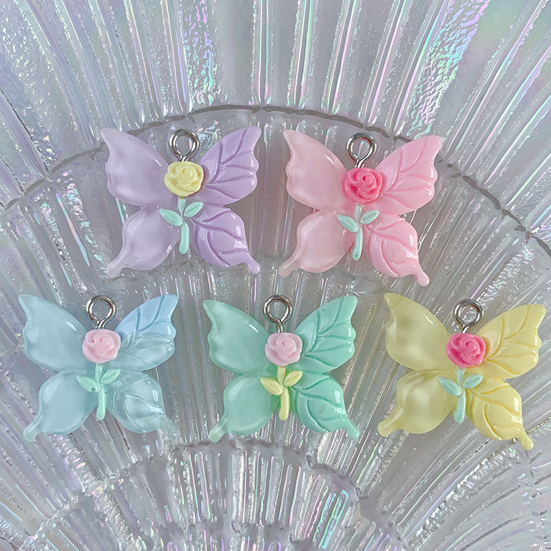 밝은 만화 장미 꽃 나비 시리즈 펜던트 DIY 보석 가방 펜던트 펜던트 키 체인 장식 새로운