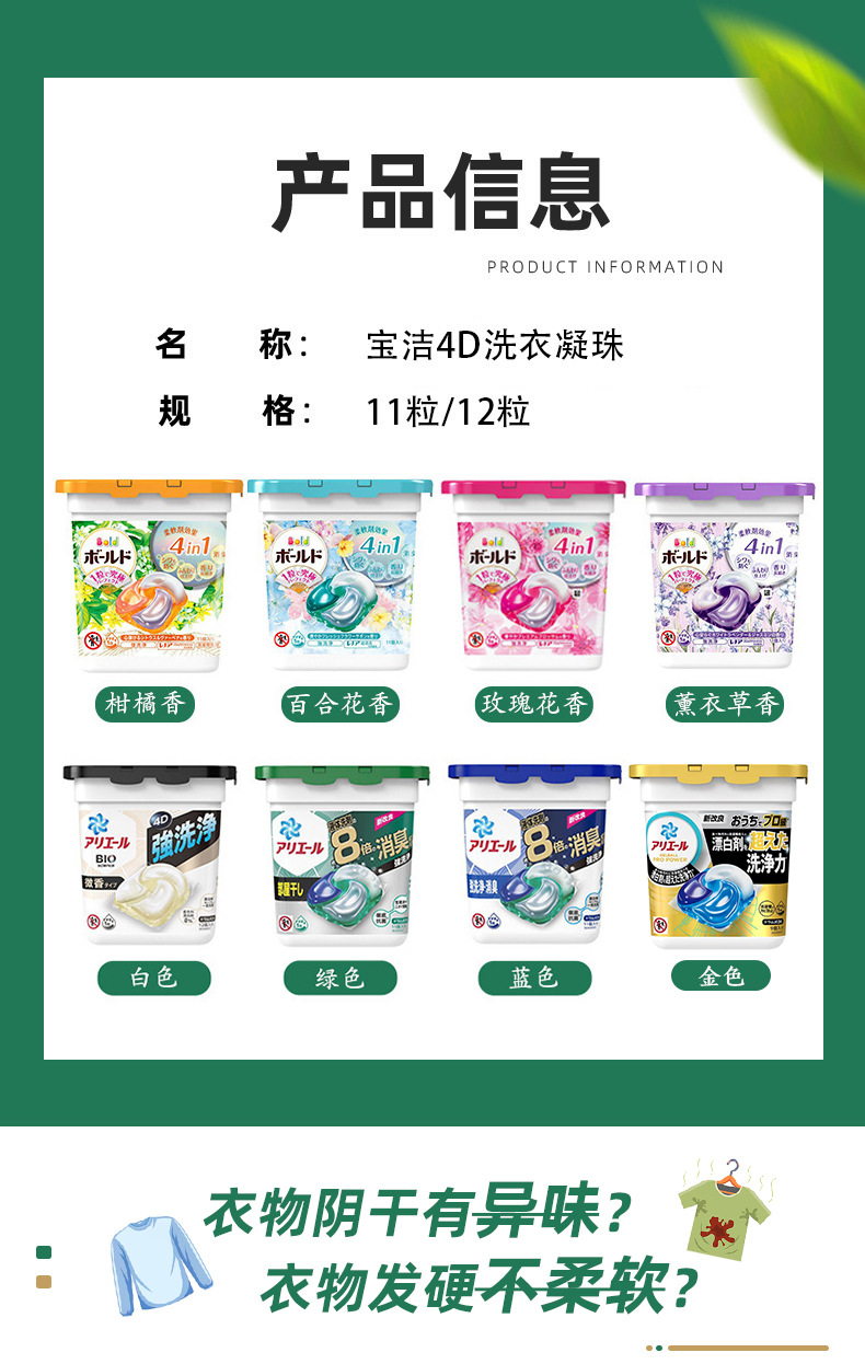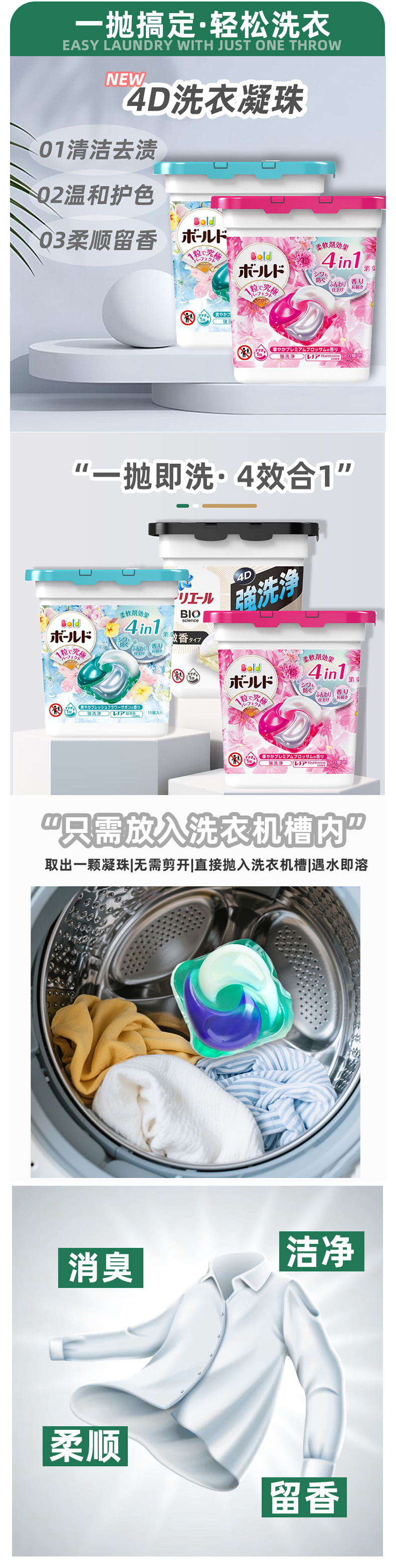 일본 오리지널 수입 P&G 세탁볼 4D 새 버전 11개 세탁비드 탈취 및 향기 원피스 드롭쉬핑
