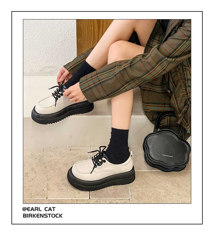 정품 가죽 영국 스타일 레이스 업 작은 가죽 신발 2024 봄과 가을 새로운 메리 제인 여성 신발 로퍼 일본 JK 싱글 레이어 신발스토어 가기