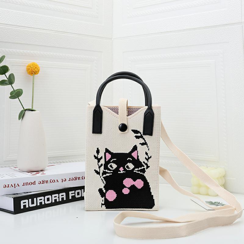 한국 인 니트 휴대 전화 가방 학생 만화 키 변경 작은 가방 울 핸드백 어깨 크로스 바디 가방